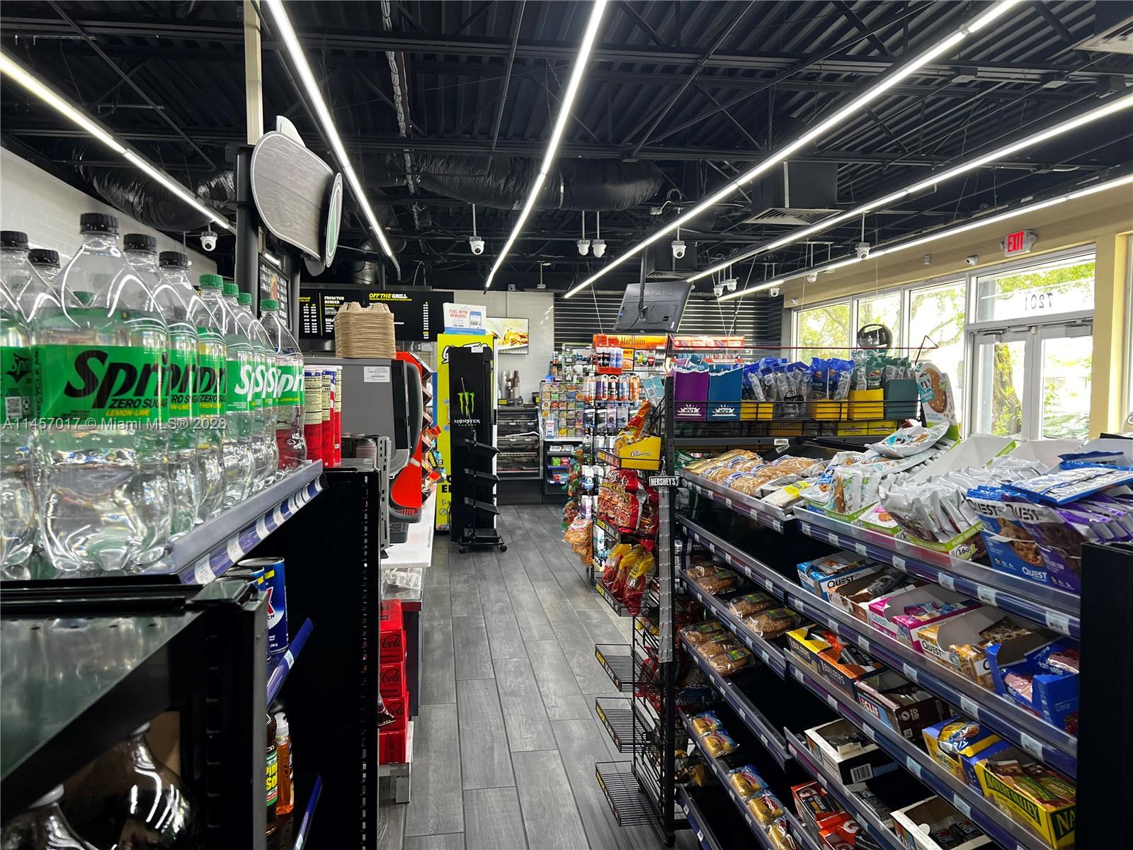 Gas station convenience store, cafeteria, car wash, ATM and lotto, beer & wine license, open 24 hour.