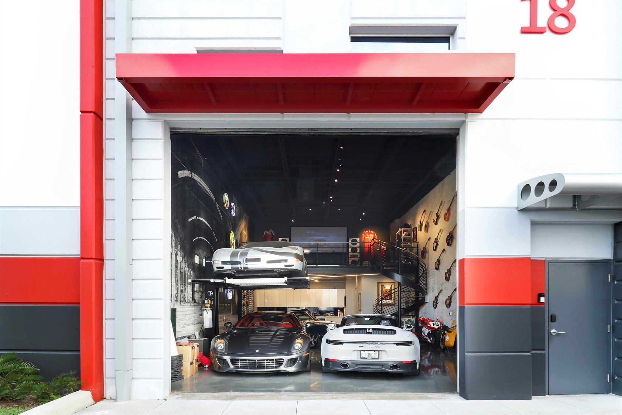Rarely and virtually never available, this unit offered is the developers model unit! Without question the best location within the development. This is the first unit on the main runway and also directly adjacent from the owners lounge & club house. The developer spared no expense in the build out of the model unit and for the first time ever is now available for resale! The Hangar is the premier garage condominium development offering unparalleled privacy and security, along with amenities akin to that of a private members club. A new class of real estate, each space is offered to owners as a blank canvas in which to store, display and enjoy their most prized collectible assets, with unlimited customization and design possibilities to carry out creating their ultimate vision