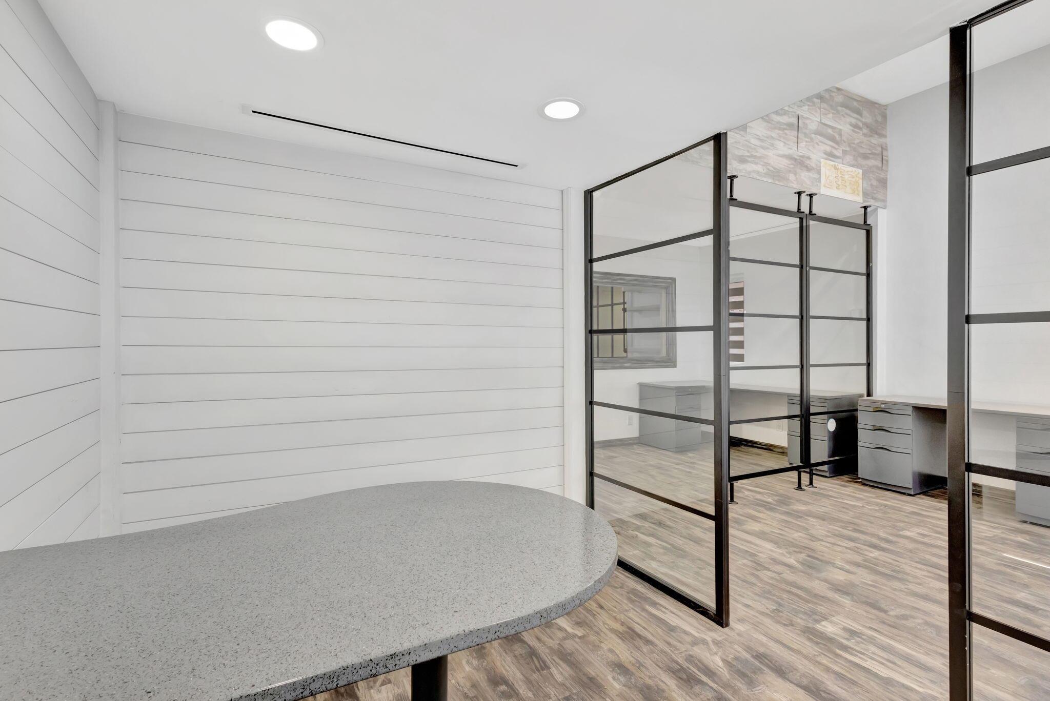RARE OPPORTUNITY to own this 1190 SF, end-cap warehouse/office in central Jupiter. The space is equally divided into half office/half warehouse. The front of the unit has 3 light-filled renovated offices, a break-room with fridge, sink, and room for a table, and a renovated bathroom. The clean warehouse space has 16-foot ceilings, lofted storage space, 2 equipment storage cages, and a bay door that opens onto a double-wide driveway. 100% air-conditioned- 2 zones. Front and rear parking. MOVE-IN READY! Great location - one block in from Indiantown Rd and 5 minutes to 1-95.