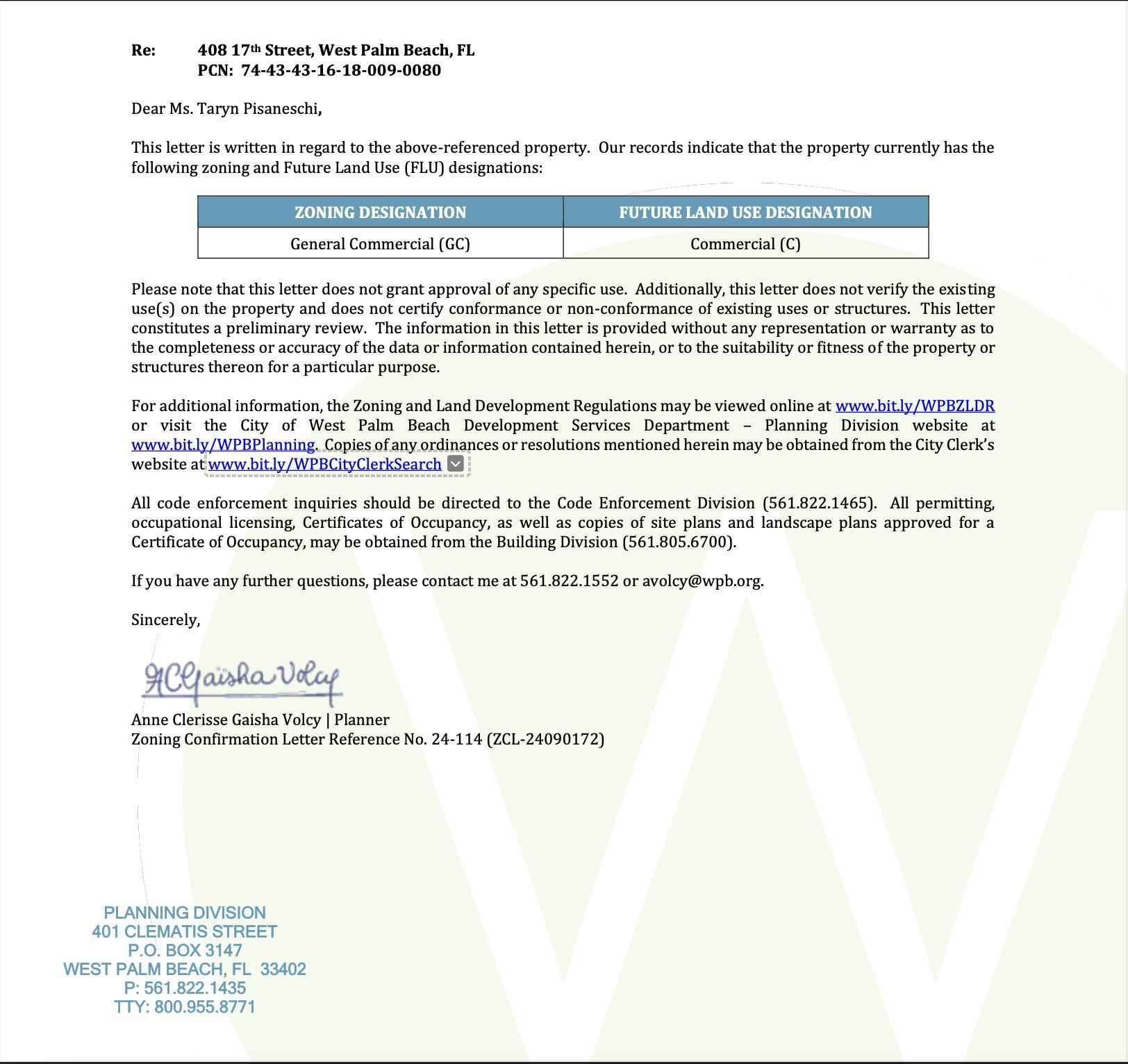 Must see to appreciate! VERY unique opportunity to purchase a 3742sq ft under CBS office/warehouse w/ additional 6000 sq ft fenced in side lot in the booming Dixie/NORA corridor. Roof 2022 w/ updated electric panel, new drywall + paint. This could be a great datacenter, fulfillment center, storage, co-working space w/ private ofcs + more. Property currently occupied by 1 business but could be 2 on day 1. Two bathrooms (1 per side), 2 new secure steel door entrances + 2 HVACS (one per side). Rent the 6000 sq ft side lot for parking, boats, RV.trailers for easy income or build a 2nd bldg. Prime location just north of downtown WPB,, across from Olara + Good Samaritan Hospital. Near Safe Harbor. See letter in pix from ZONING confirming General commercial zoning in a proactive CRA district.