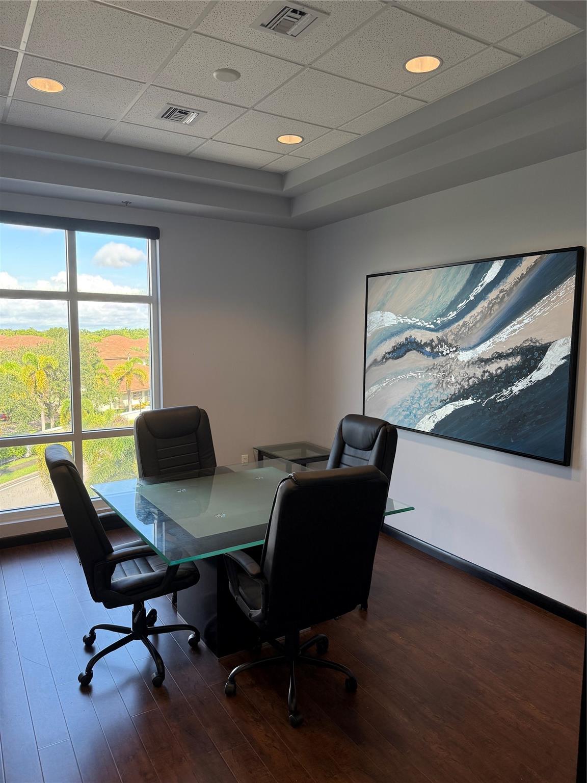 Rare top floor office unit with a master office, two side offices, a closet, and conference room. Large windows with a open space concept, front reception area, waiting area, and small kitchen. The unit is furnished and fully ready for move in. Just renovated and repaired. New AC unit. The price is in SF/YR and is NNN. The electricity and internet bill will be handled by the tenant (~$100/month).
