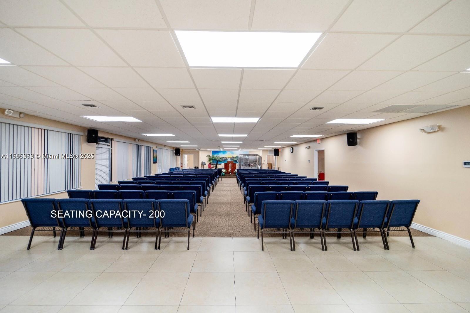 Rare opportunity to own your own church! The main sanctuary can accommodate more than 200 seating with six bathrooms and two urinals available. Additionally, there is a breakout room, mini hall, three classrooms, pastor's office, system operating counter room, and a baptism tank. The building features new LED lights, with a roof that is only 5 years old. The five air conditioning units are just 3 years old. The interior boasts tile and carpet flooring. With 105 common parking places and additional front parking, convenience is ensured. The property has undergone a 40-year inspection and is awaiting certification. Owner financing available