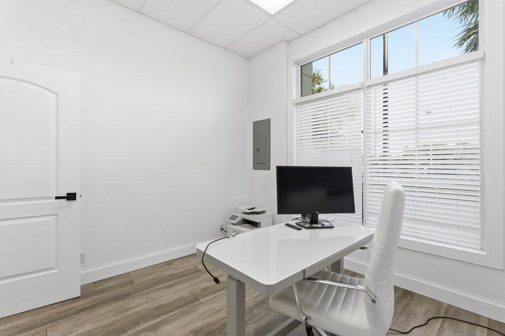 Freshly renovated 1,000 SF office condo in the desirable Banyan Place Commercial Condominiums. This move-in-ready first-floor suite features two private offices, an open conference/flex area, private restroom, central A/C, and ample parking. Prime location just off Northlake Blvd and only minutes to I-95 with numerous national and regional retailers nearby. Water and CAM fees are included; tenant pays real estate taxes. Ideal for professional users and fits approximately 3-8 people. Excellent visibility and accessibility for businesses seeking a modern, efficient footprint in Palm Beach Gardens.