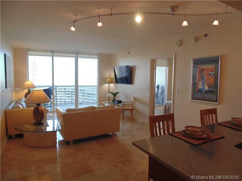 Beautifully decorated 1 bedroom plus den with views of the intracoastal and city. Polished marble and hardwood bamboo throughout give this condo and extra luxurious touch. Large and private balcony-terrace, custom-built walk-in closet, upgraded bathroom with double vanities, and a sofa-bed in the den. Amazing oceanfront 5-star building with valet parking, full beach & pool service, and state of the art fitness center.