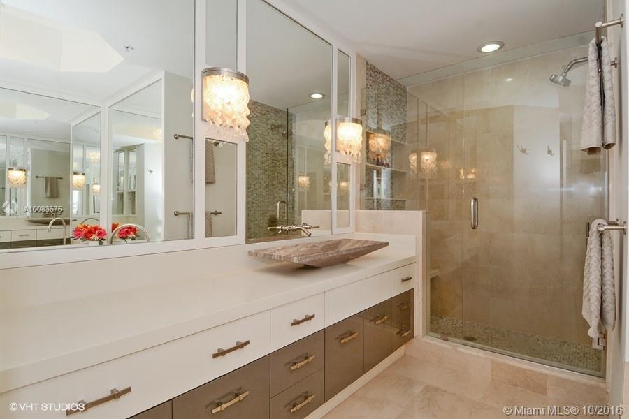 Absolutely Stunning Direct Ocean in exceptional low density complex. Floor plan has been architecturally customized;appointments are designer updated throughout.Ultra modern high end custom kitchen & baths. Miele appliances gorgeous bath & lighting fixtures.2nd & 3rd baths have stone & solid surface walls.Custom computer & TV desk area.Den w closet/wardrobe serves as 4th bedroom/media room.Intracoastal views from guest bedrooms.Great day/night views of park,ships and city. Easy Walk to Broadwalk & pier.