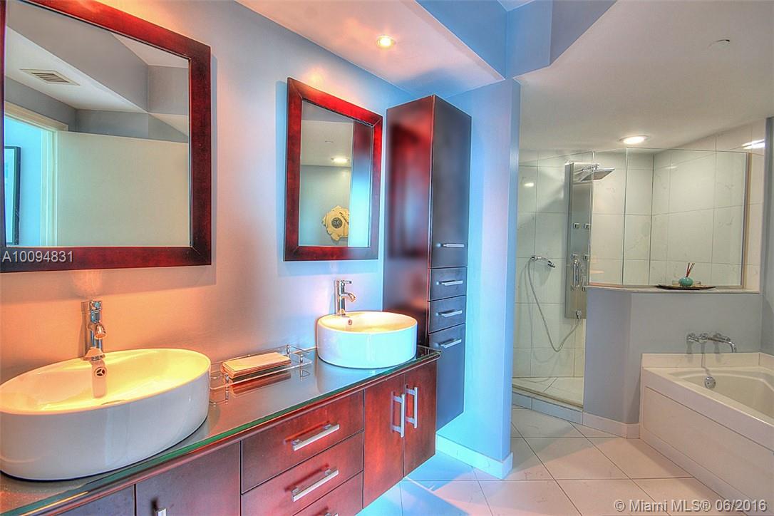 Refreshed & repriced! Completely custom corner unit. NEVER RENTED! Marble floors throughout, remodeled bathrooms, custom closets, built-in storage, electronic shades, & tiled balcony! Foyer entry allows a sense of privacy & tranquility. Split floor plan with plenty of storage space. Northern exposure w/views of skyline, River, & Bay. 500 Brickell offers a pool, rooftop pool, gym, two party rooms, 24-7 concierge & security, & valet. Close proximity to CityCentre, metro, Whole Foods, Mary Brickell Village.