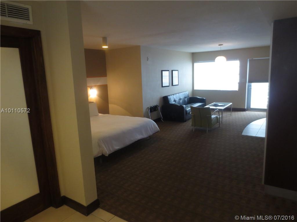 This fully furnished condo-hotel can be rented daily and is located in the heart of Ocean Drive between the Versace mansion and the Clevelander. It comes turn-key and ready to rent by owner or put into the optional hotel program. Walk out of the building onto Ocean Drive or across the street to the beach. Enjoy the view from your private balcony or take a dip in the rooftop pool. Room has a kitchenette and all utilities are included in maintenance fee.