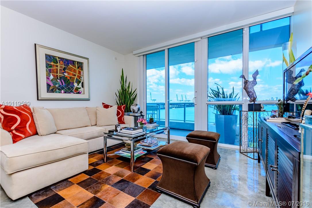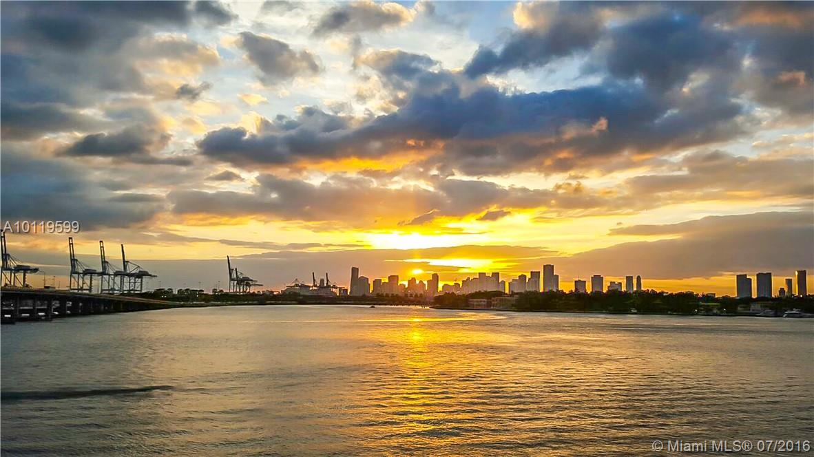 Enjoy mesmerizing views of Biscayne Bay & the Miami Skyline that showcases spectacular Sunsets from this exceptional Bentley Bay 1 br/1 bath bay front unit. Features include: 776 sq.ft. interior, corner unit, light and airy, European kitchen cabinetry, marble countertops, stainless steel backsplash, polished concrete flooring throughout, bathroom contains Italian marble, separate tub & shower, walk-in closet, 9 foot ceilings & 1 valet parking space. Easy to show. Live the Miami Beach lifestyle in this fantastic unit!