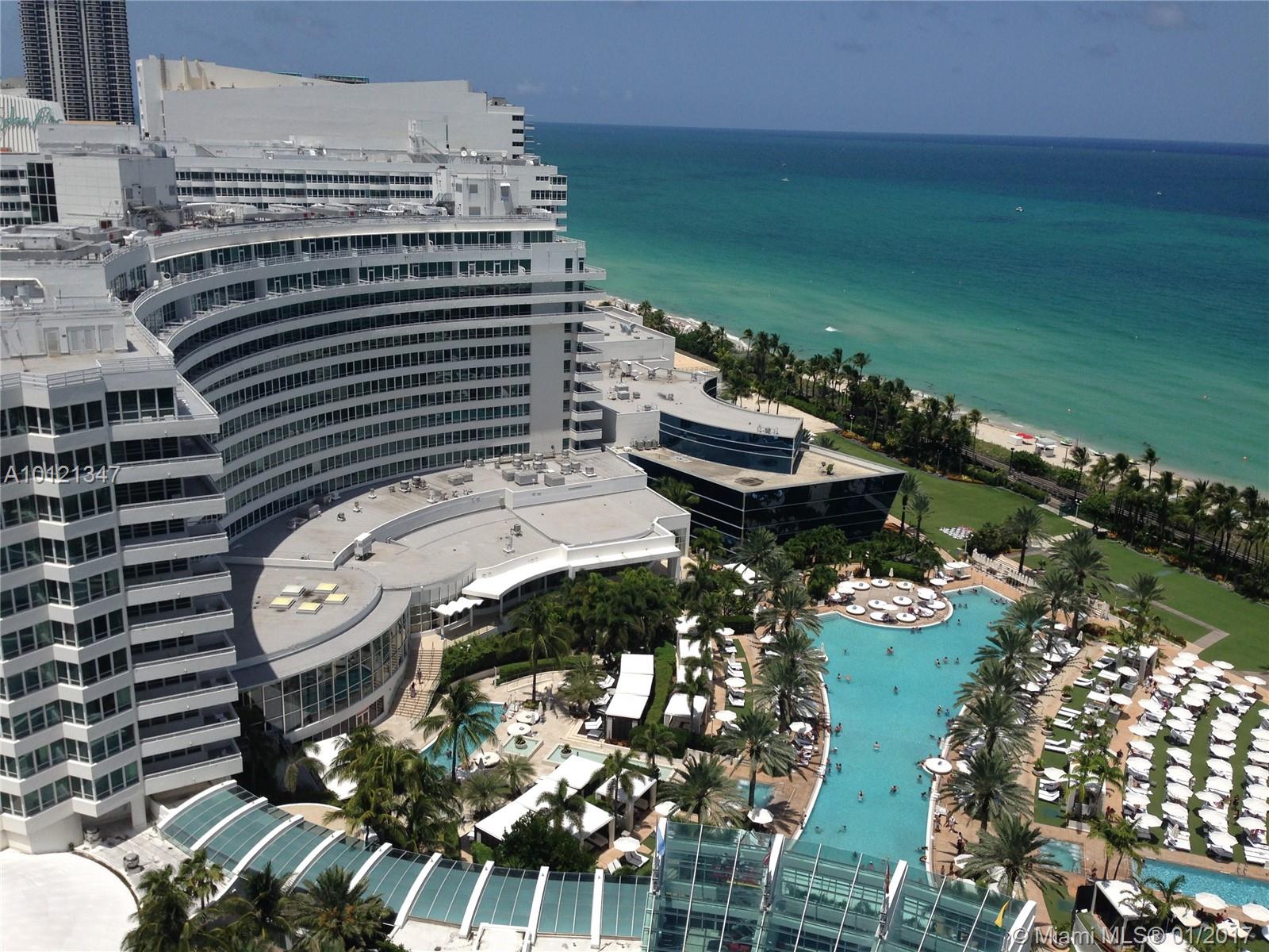BEAUTIFUL 1 BEDROOM/2 BATHS WITH SPECTACULAR UNOBSTRUCTED VIEWS OF THE OCEAN INTRACOASTAL. OWNER HAS OPTION OF ENROLLING IN HOTEL RENTAL PROGRAM. USE IT PART-TIME & RECEIVE INCOME WHILE YOU'RE AWAY! FULLY FURNISHED TURNKEY WITH KING BED + SLEEPER SOFA. FONTAINEBLEAU OFFERS 22 OCEANFRONT ACRES, MANY TOP RESTAURANTS, LIV NIGHT CLUB, 40,000SF STATE OF THE ART SPA & FITNESS CENTER. MAINTENANCE FEES INCLUDE: AC, LOCAL PHONES, ELECTRICITY, VALET AND DAILY FREE BREAKFAST IN OWNERS LOUNGE.