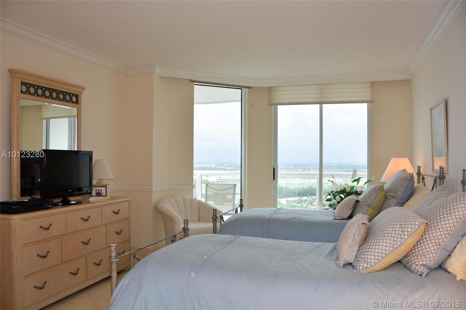 BEST DEAL! Spectacular Penthouse corner unit w/BREATHTAKING views from 2 balconies. 2 covered parking spaces in garage close to the elevator. 3 BR 2 BA, 3rd BR currently used as a family room, this unit features split floor plan, marble floors , eat-in kitchen, formal dining room, spacious master suite w/2 walk-in closets, 1 of them currently used as an office, also has a large master bath w/bidet, double sink, tub & glass shower. Great amenities, 24 hr. security. Small pets allowed, Ok to rent.