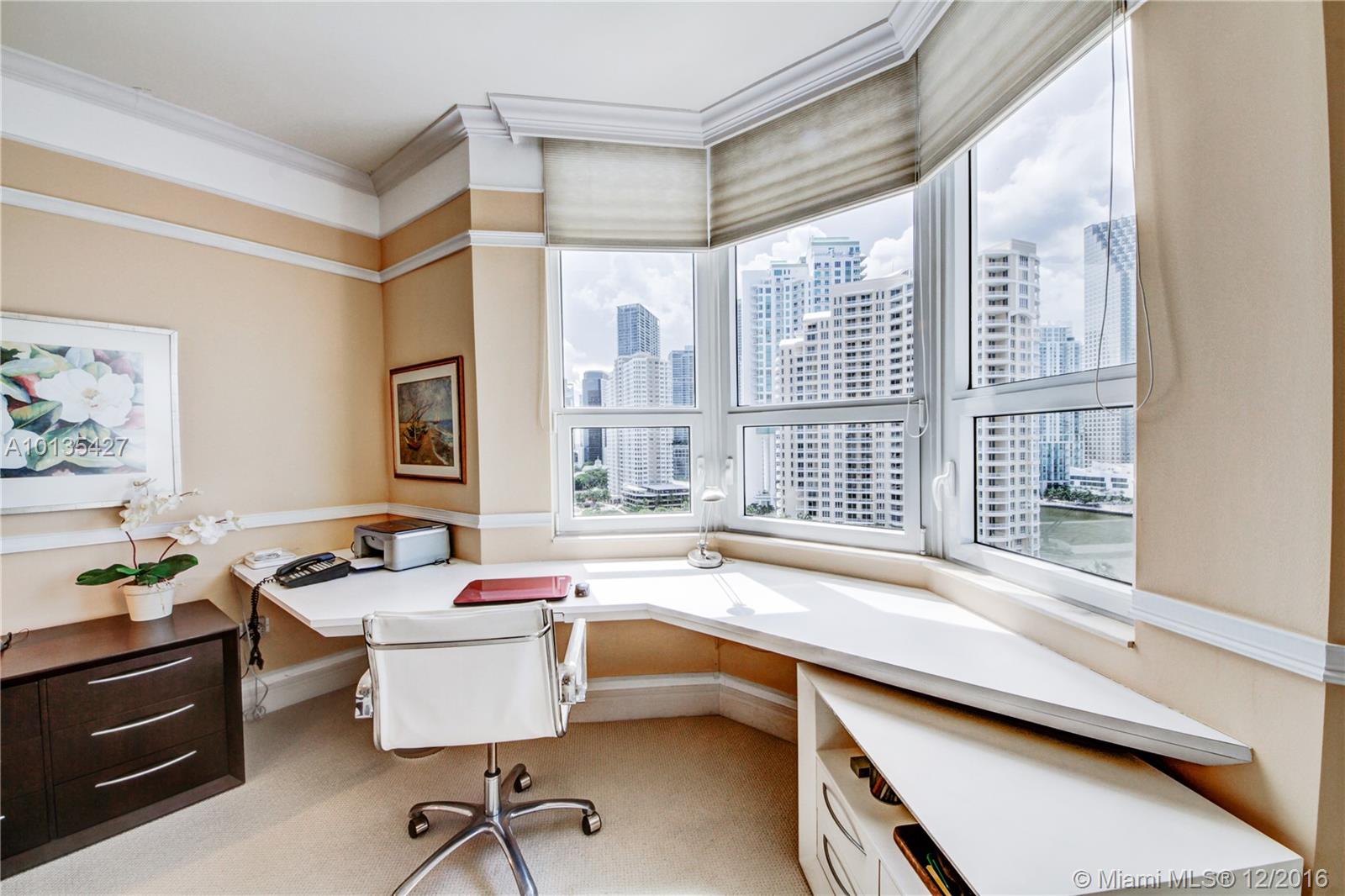 PRICED TO SELL - Beautifully kept 1540 sq/ft 2/2/1 unit w/ rare 2 ASSIGNED parking, 1 ASSINGED storage (10K value), a giant balcony w/ stunning bay/city views & access from both bedrooms. 24x24 Marble floors in living/dining/kitchen/balcony, an eat-in area within kitchen, huge walk-in California closets, an upgraded 1/2 bath w/ a second sink, a master bath w/ double vanity, Jacuzzi tub, and shower, a built-out office desk in the master. Two Tequesta is one of the most luxurious buildings on Brickell Key.