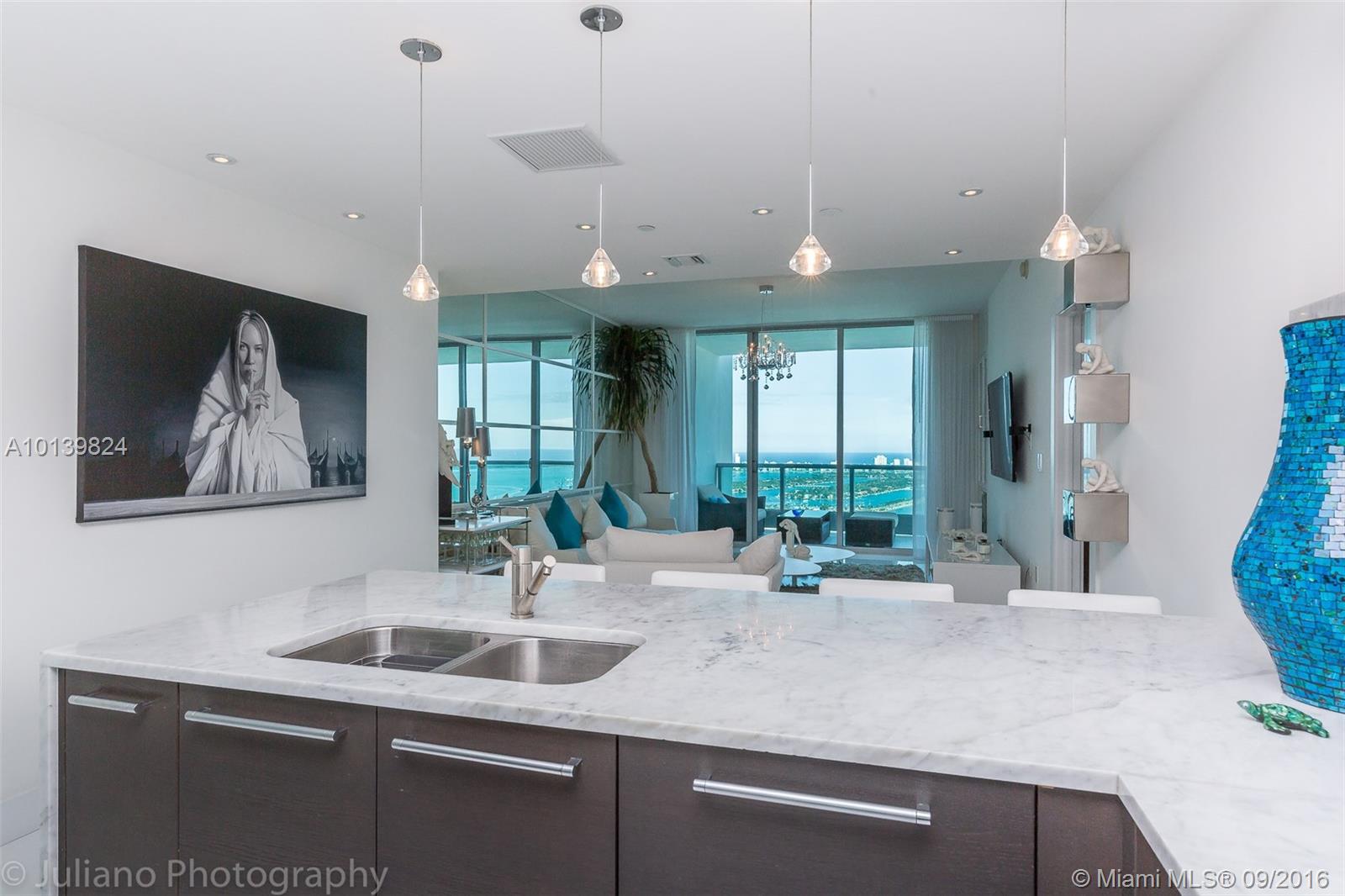Bright and beautiful 3 bedroom / 3 bathroom with dazzling views of the Bay, Ocean, & City on the 50th floor! Enjoy breathtaking sunrises and sunsets in this divine abode. Beautiful finishings and top of the line appliances. Delight in the buildings' 5 Star amenities including 24 hour security, cinema, fitness center, 2 pools, library, community room, billiard tables, full service spa & more. Great location and walking distance to Arena, Museums, theatres, concert halls, restaurants, shopping, & more!
