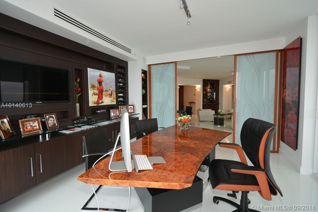 SAVOR THIS BREATHTAKING PH IN THE EXCLUSIVE TRUMP ROYALE. IMPECCABLY RENOVATED TO THE HIGHEST STANDARDS. THIS 3 BEDROOM + DEN AND 3.5 BATHROOMS UNIT, HAS WIDE GLASS FLOOR FINISHED WITH ONIX DESIGNED STONES. A TV ROOM AND LIBRARY (WHICH CAN BE EASILY CONVERTED TO A 4TH BEDROOM. WITH A BRIGHT AND ELEGANT MASTER SUITE. HIS AND HER BATHROOM WITH CUSTOM WHIRLPOOL TUB. MAHOGANY PRIVATE ELEVATOR ENTRANCE. DESIGNER LIGHTS,DESK & SHELVES W/IMPORTED ITALIAN CUSTOM MAHOGANY & CARVED GLASS DOORS.
