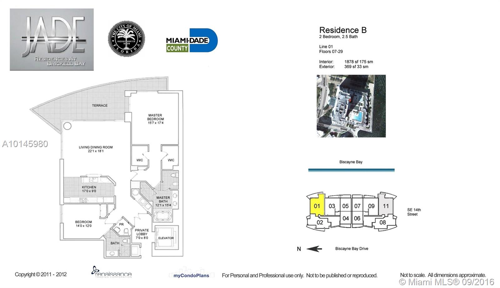 Jade at Brickell Bay breathtaking 2 bed/2.5 baths, North East, 9th floor corner with magnificent direct bay & pool views. Enjoy the breeze, feel like touching the water from its 360 SF balcony. Sunrise friendly & spacious Master Suite w luxury spa/bath. Miele & Sub-Zero appliances. 1,878 SF of marble floors. Private foyer & elevator. Pamper yourself with first class service & amenities. Includes concierge, valet, wellness center, squash courts, roof-top club room, business center & more!