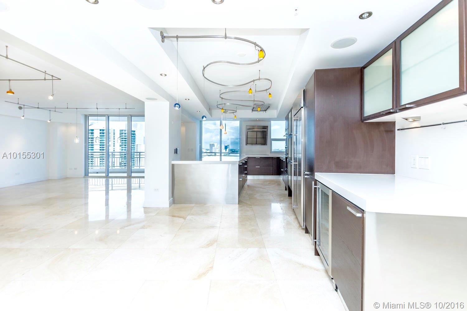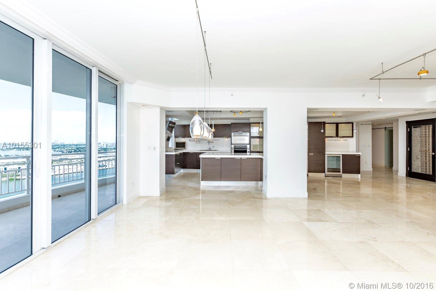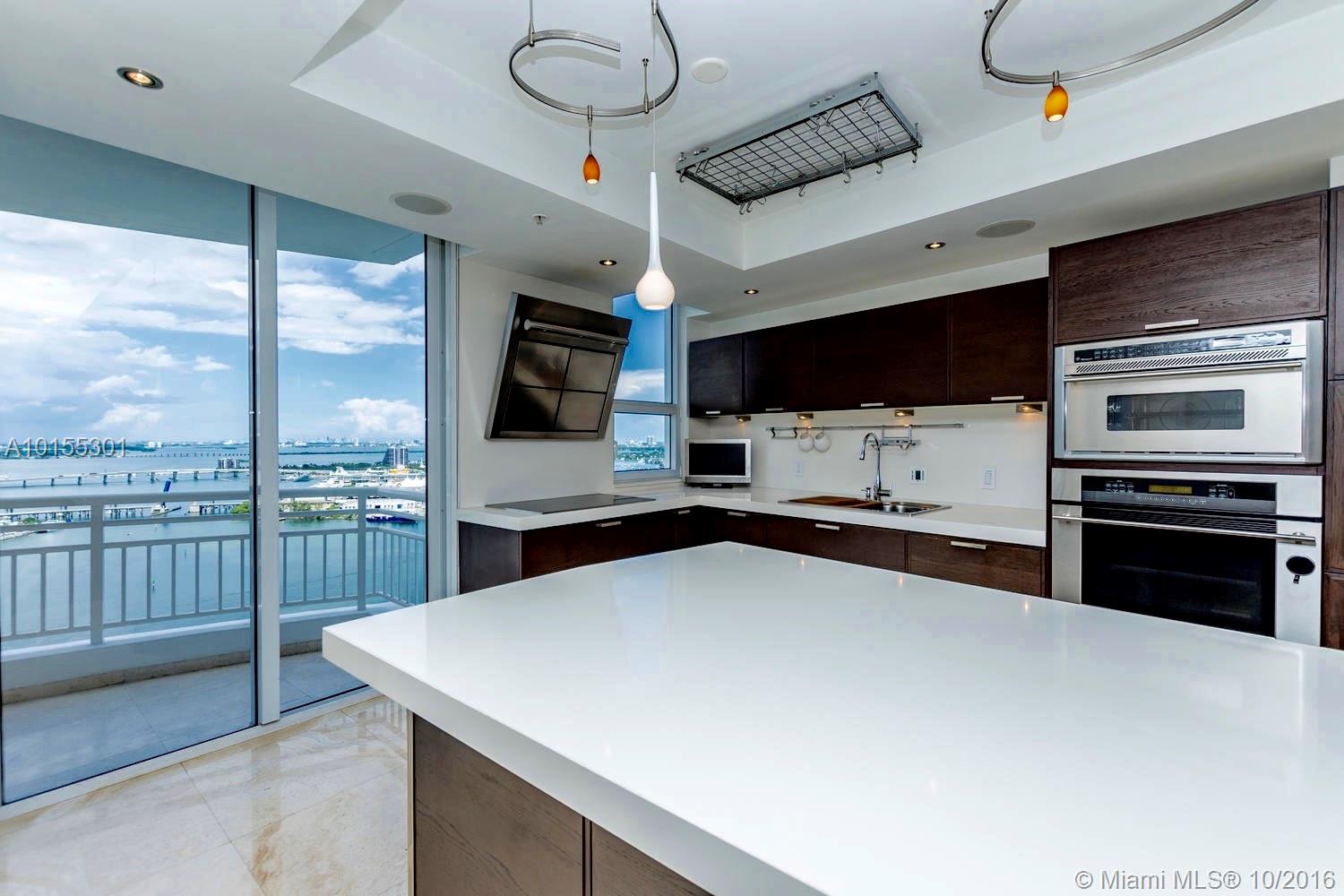 Large Combo Unit. Located at the guarded island of Brickell Key, ideal for families. Spectacular views of Biscayne Bay & Ocean. 2 oversized terraces make this customized residence the most unique unit in the bldng. Marble &wood flooring throughout. Extra Family room or Office. Open gourmet kitchen with Italian cabinetry/Quartz counter tops. A 200(+) bottles walk in wine cellar. Surround system in every room. 4 assigned parking spaces and storage. 24 hr security. Spa, Tennis, basket courts in the building.