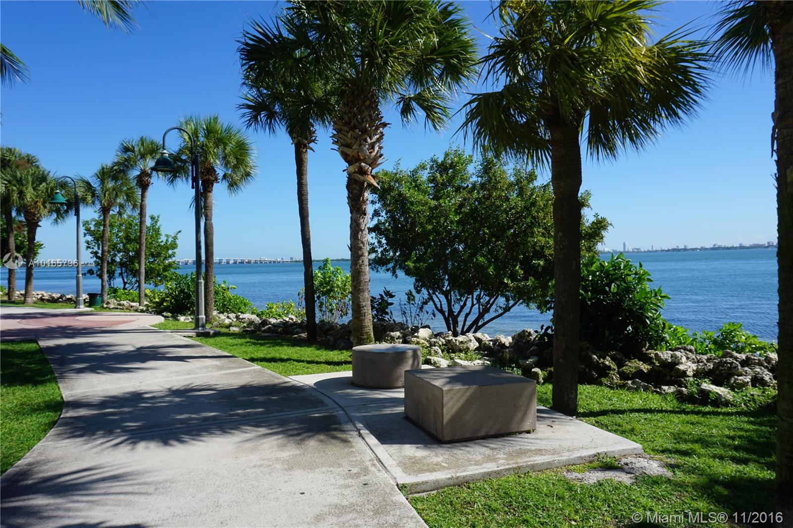 Spacious high floor, spectacular bay & city views with generous full length balcony, floor-to-ceiling impact windows. Amazing kitchen w designer appliances, granite & marble counters, custom built cabinets, imported white marble floors throughout, walk-in closets, glass shower & hot tub. World class amenities inc fitness center, sauna, massage & steam rooms, friendly concierge & valet. Low maintenance fees. Across from Margaret Pace Park offering tennis, basketball, volleyball, tot lot & pet play area.