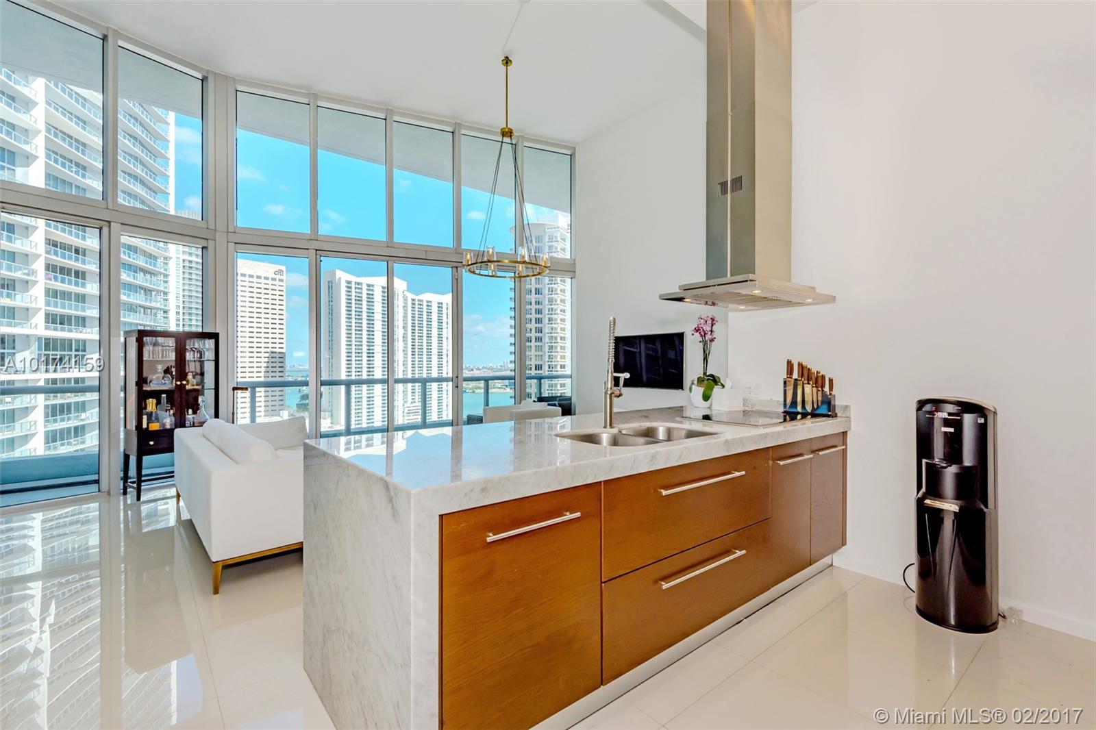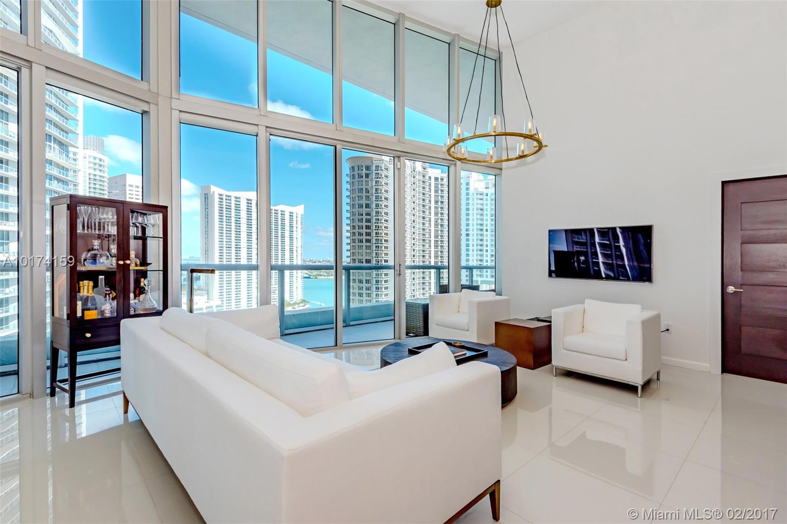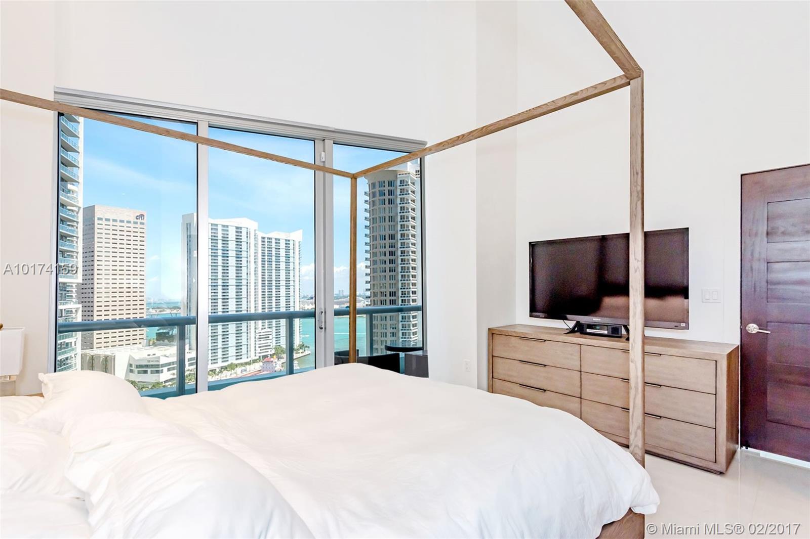 Spectacular 2/2 split unit w/breathtaking ocean, river & city views with 16ft high ceiling windows (Only floors 14, 15, 22, and 41 have high ceilings windows). Modern and sleek 24x24 white porcelain floors. Luxurious marble baths w/ over-sized Jacuzzi tub. Walk-in closets custom lined with wood. Extended travertine counter top, LED lighting. Top of the line appliances. Resort style living with state of the art, gym, spa. Five star restaurant Cipriani. **Special Assessment paid in full by owner*