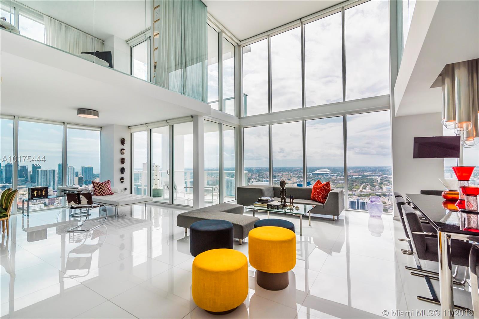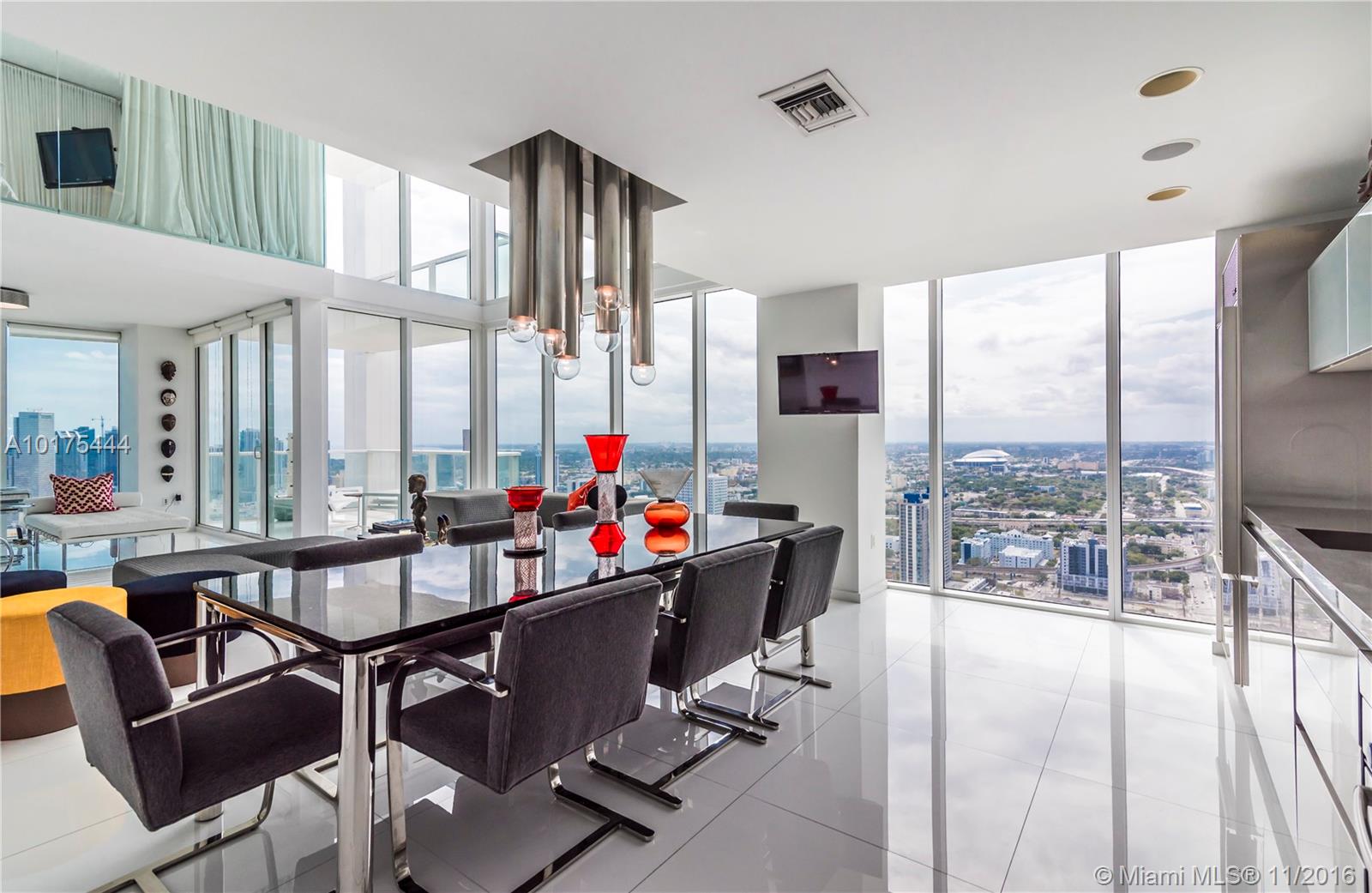 Cutting Edge modern masterpiece in the sky. This 2,581 sq/ft 3 level PH loft with 3 BD 3BA has 20 foot walls of glass allowing spectacular sunset views. This PH is finished to perfection with white glass flooring throughout, top of the line European fixtures and appliances which include Sub Zero, Meile, Bosch & Duravit. Stunning 44th level Private Dipping Pool finished with Bisazza tile, and jaw dropping city views. Live in the cultural hub of miami across from the PAM & Frost Science Museum.