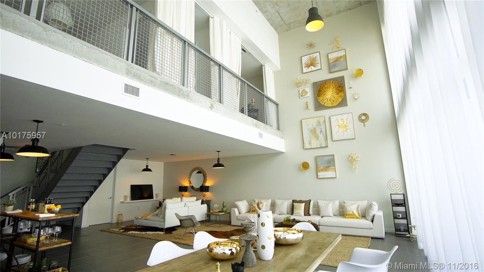 Loft 2-Story , High Ceiling ,2 beds/3 bath features open floor plan great for entertaining with large balcony. Can be converted - 3 beds. Master bedroom located on the 2nd floor with walk-in closet & spacious master bath. Condo features ultra modern lobby, Jacuzzi, sauna, mineral & temperature controlled pools, state of the art fitness center, out-door gathering spaces, covered parking, concierge & 24/7 security. Close to shopping, restaurants and minutes away from Wynwood, Downtown & Miami Beach and I95.