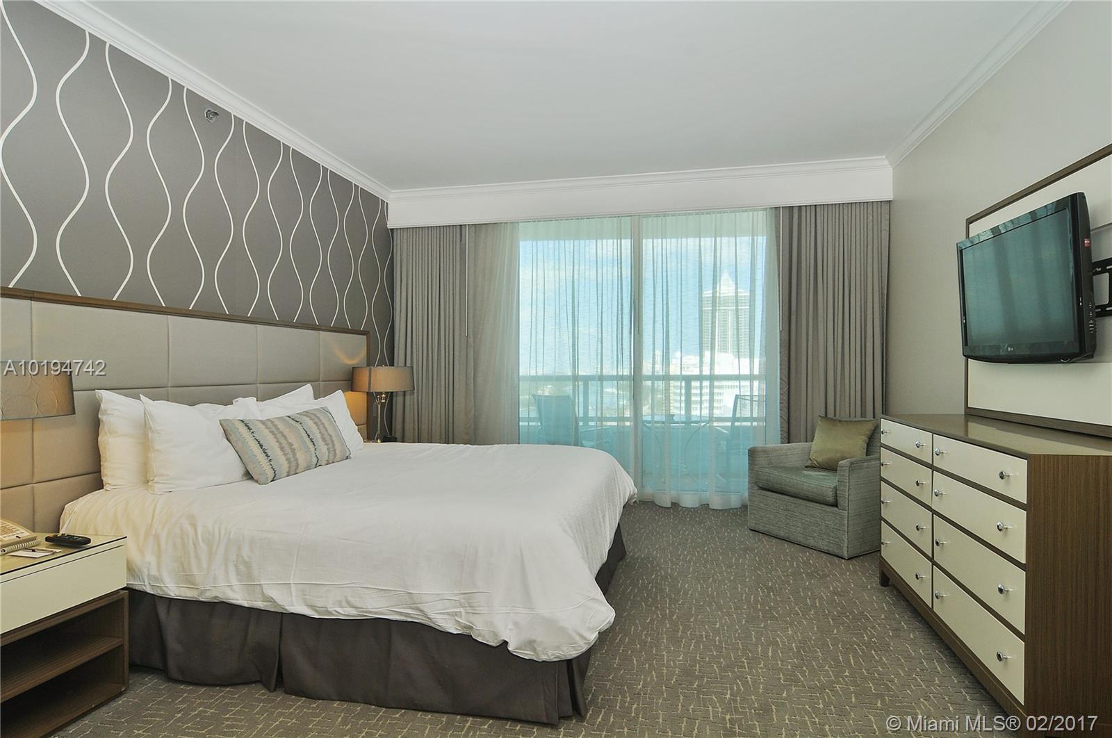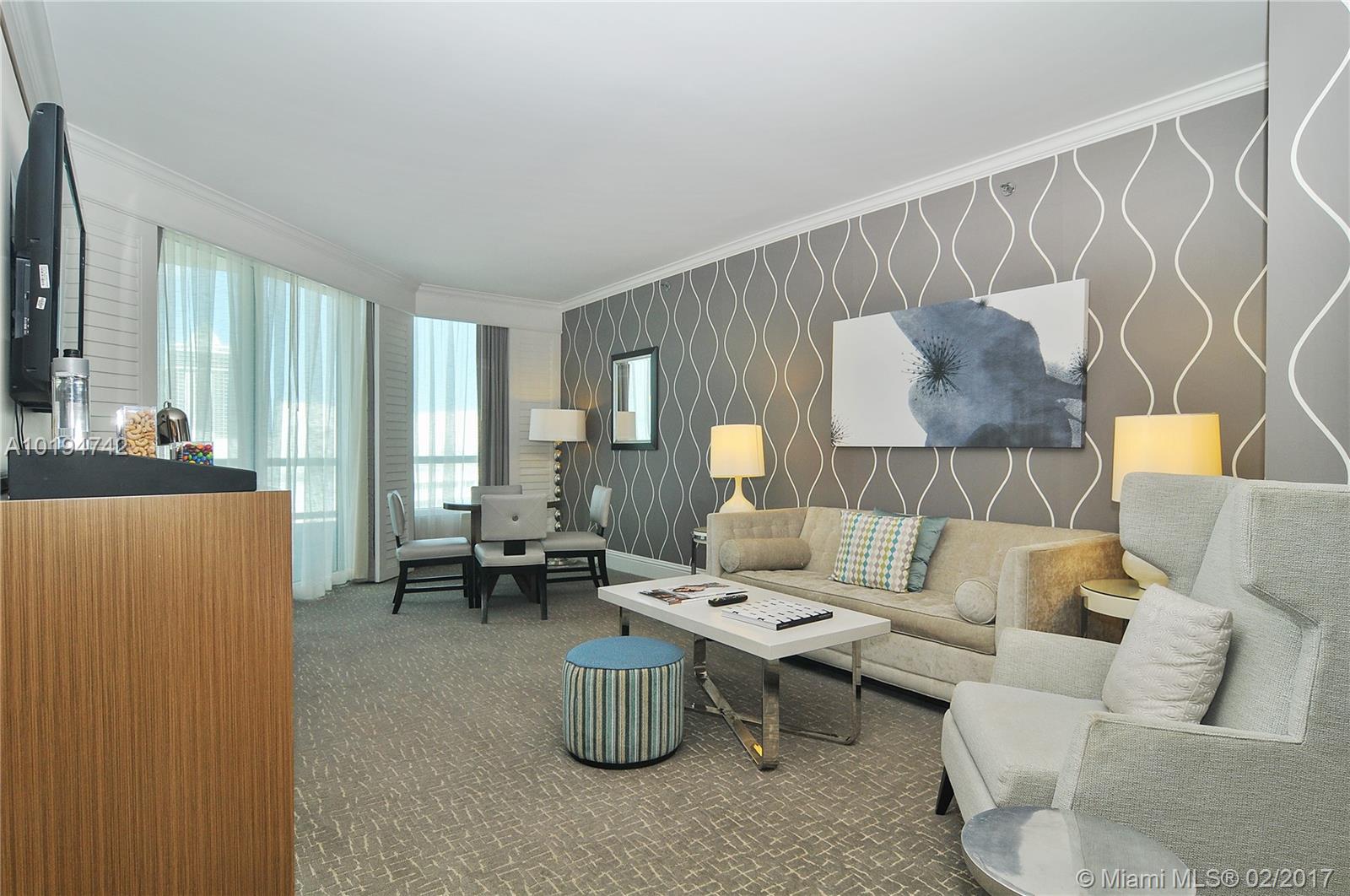BEAUTIFUL 1 BEDROOM/2 BATHS WITH SPECTACULAR UNOBSTRUCTED VIEWS OF THE OCEAN AND INTRACOASTAL. OWNER HAS OPTION OF ENROLLING IN HOTEL RENTAL PROGRAM. USE IT PART-TIME & RECEIVE INCOME WHILE YOU'RE AWAY! FULLY FURNISHED TURNKEY WITH KING BED + SLEEPER SOFA. FONTAINEBLEAU OFFERS 22 OCEANFRONT ACRES, MANY TOP RESTAURANTS, LIV NIGHT CLUB, 40,000SF STATE OF THE ART SPA & FITNESS CENTER. MAINTENANCE FEES INCLUDE: AC, LOCAL PHONES, ELECTRICITY, VALET AND DAILY FREE BREAKFAST IN OWNERS LOUNGE.