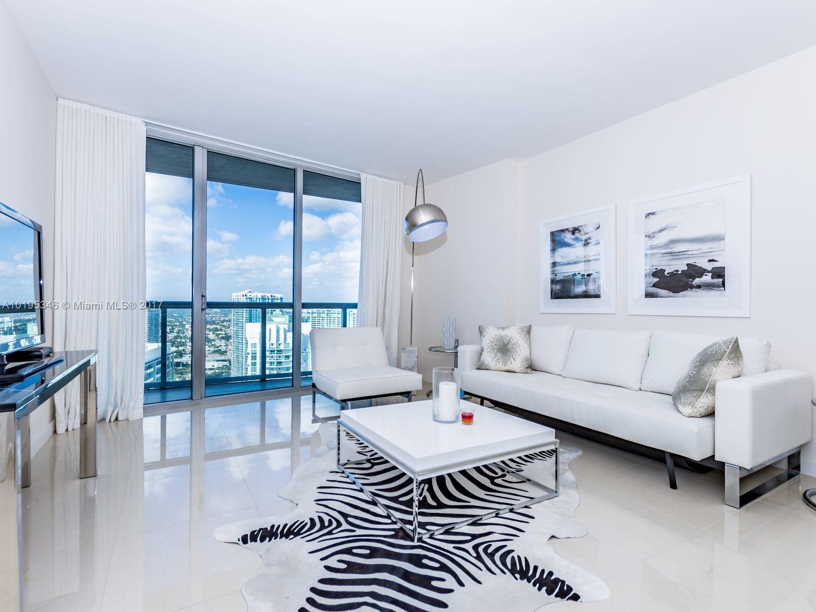 FULLY FURNISHED TURN KEY UNIT DESIGNED BY TUI. LOCATED ON THE 48th FLOOR WITH EXTRAORDINARY VIEWS OF THE MIAMI SKYLINE AND THE MIAMI RIVER. GREAT FOR INVESTOR OR EXCEPTIONAL LIFESTYLE LIVING. ONE OF THE LARGEST 1 BEDROOM LINES IN THE BUILDING. FLOOR TO CEILING WINDOWS, PORCELAIN TILES THROUGHOUT, TOP OF THE LINE WOLF APPLIANCES, SUBZERO REFRIGERATOR, ITALIAN CABINETRY. LARGE BALCONY. AMAZING 5-STAR SPA & FITNESS CENTER FEATURING 2 ACRE POOL DECK, 24-HOUR CONCIERGE AND SECURITY. NO RENTAL RESTRICTIONS.