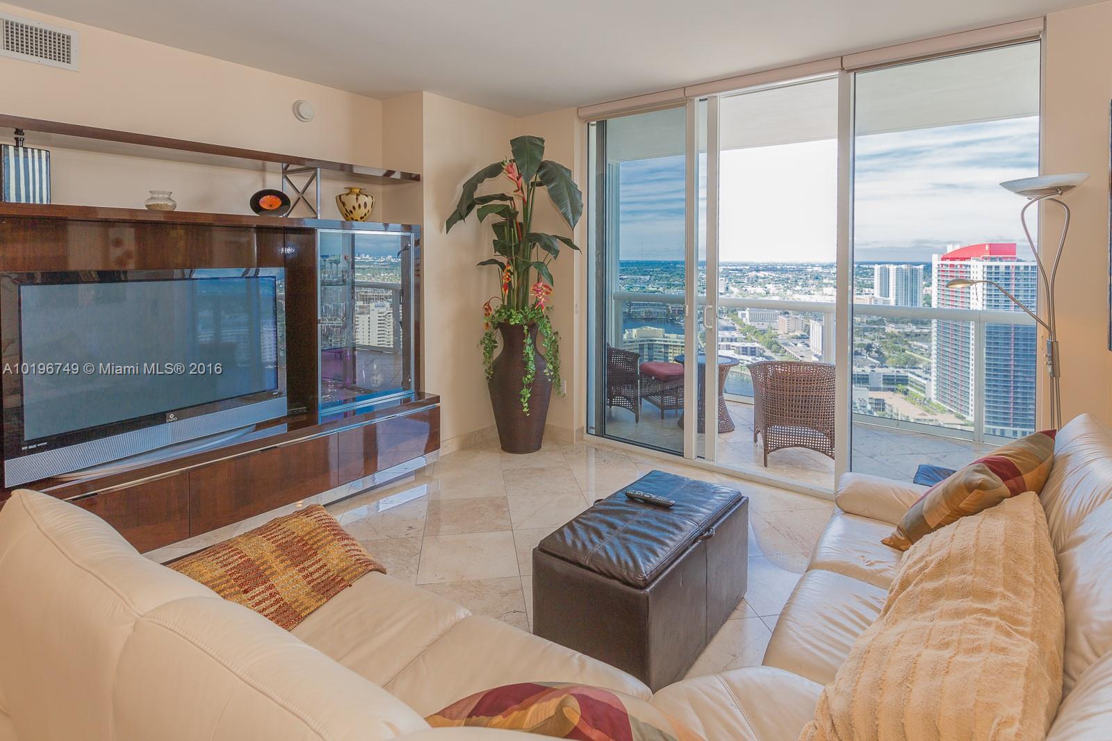 ARCHITECTURALLY PERFECT! The Beach Club is the conversation piece of the beach and offers the BEST BEACH FRONT RESORT STYLE AMENITIES. Relax, sitting on the SUNSET TERRACE (approx 168 Sq.Ft.) enjoy breathtaking direct INTRACOASTAL/SOUTH FL NIGHT LIGHTS VIEWS. CHIC-ELEGANT-SPACIOUS 34th FLOOR UNIT w/ MARBLE FLOORS, 3 bedrooms w/ baths each, STUNNING VIEWS from the living area, master bedroom and GST bedroom. EURO STYLE KITCHEN CABS w/ stainless steel and GRANITE TOPS. STORM READY w/ impact windows & doors.
