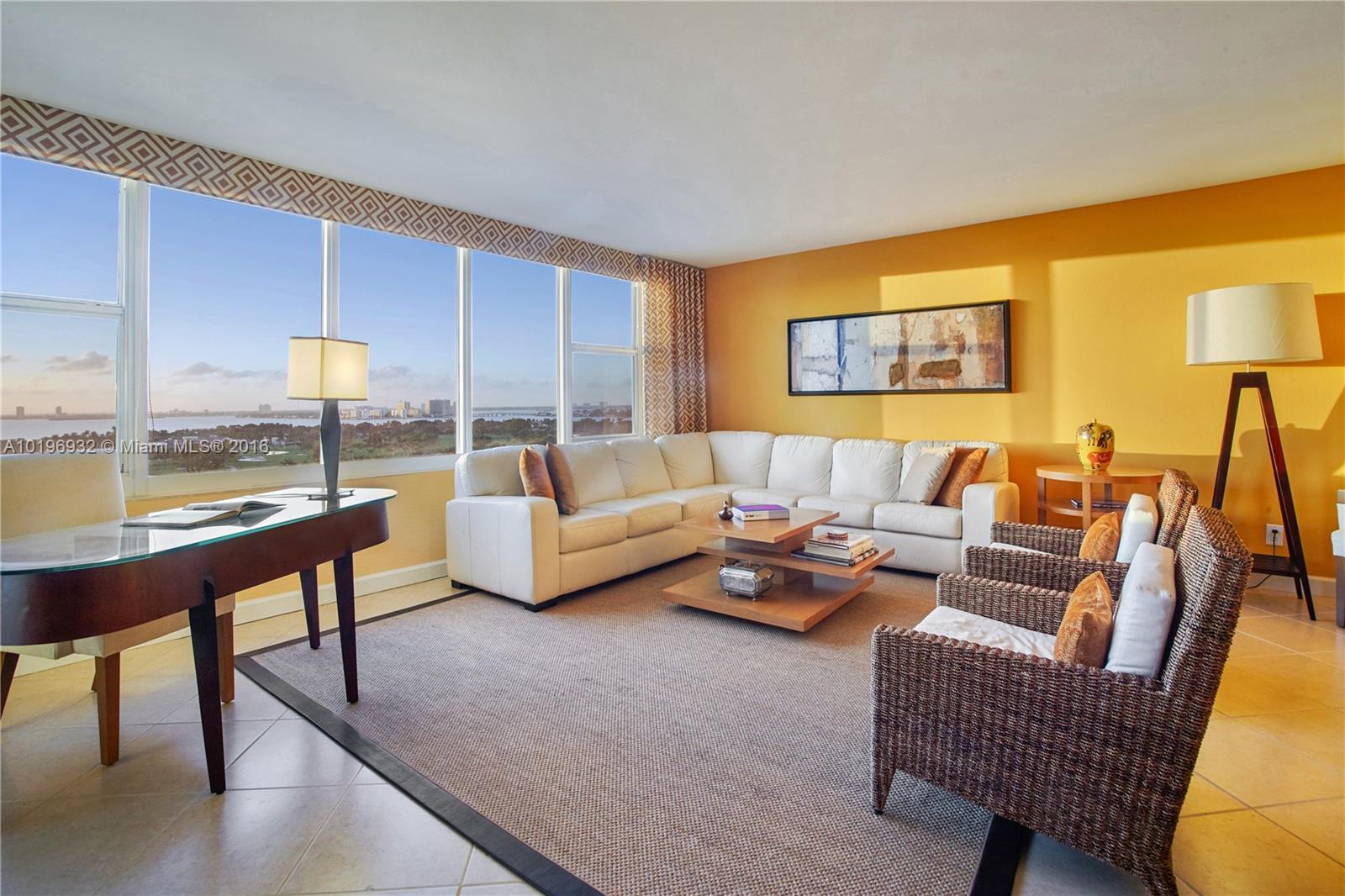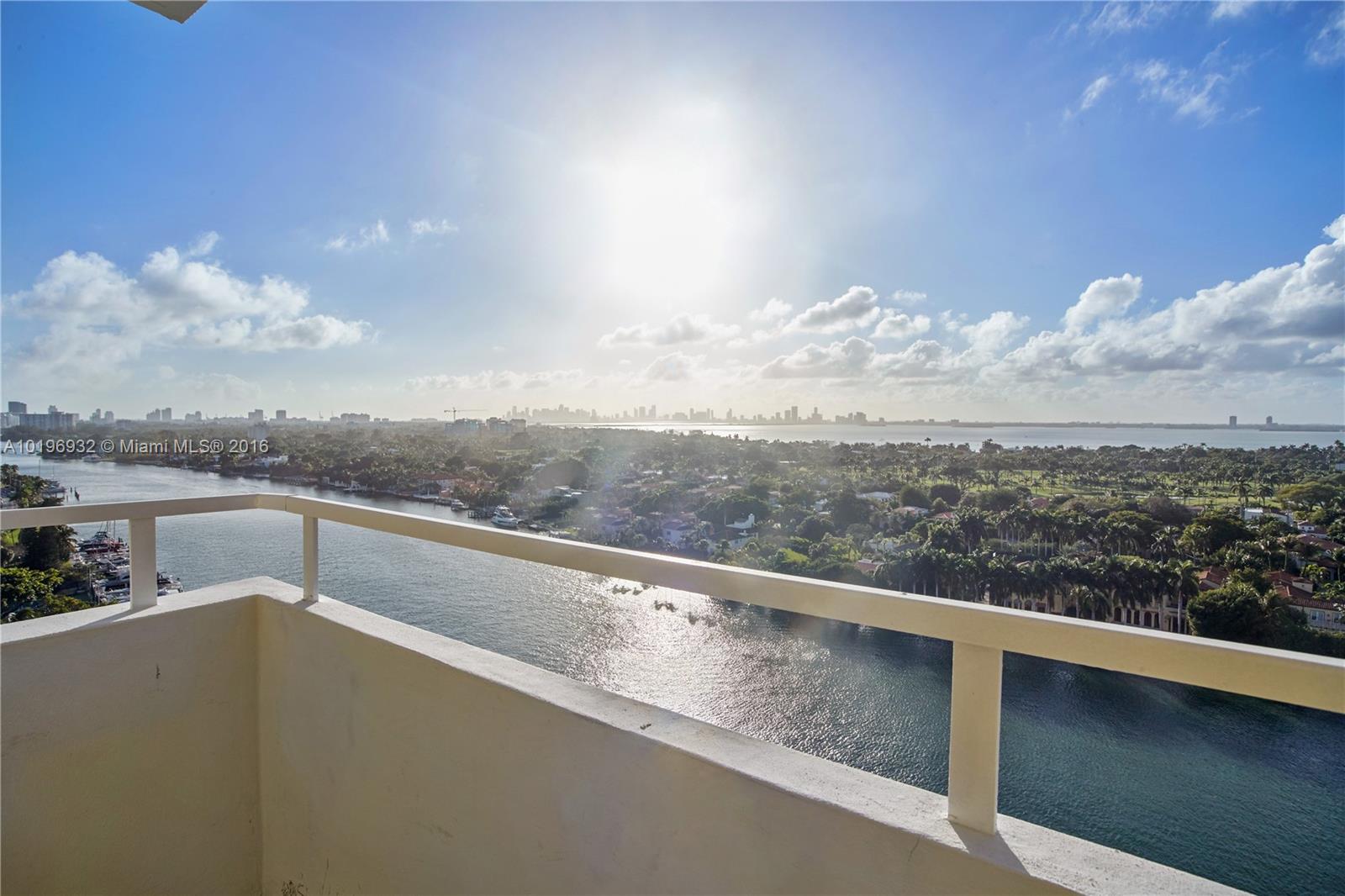 Elegantly appointed unit by famed designer Steven G in the heart of Millionaire's Row. This corner unit boasts THE BEST views in the entire building - sweeping views from each room of La Gorce golf course, the intracoastal & downtown Miami. With 1,750 SQFT of interior living space & a large balcony off the living room & master bedroom, this generously sized property is perfect as a full time residence or spectacular vacation home. Offered turn-key with updated kitchen & bathrooms, full service building.