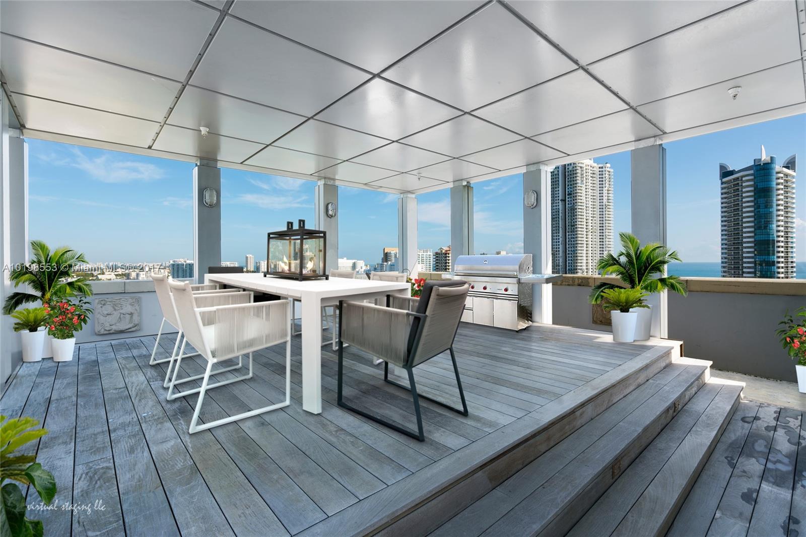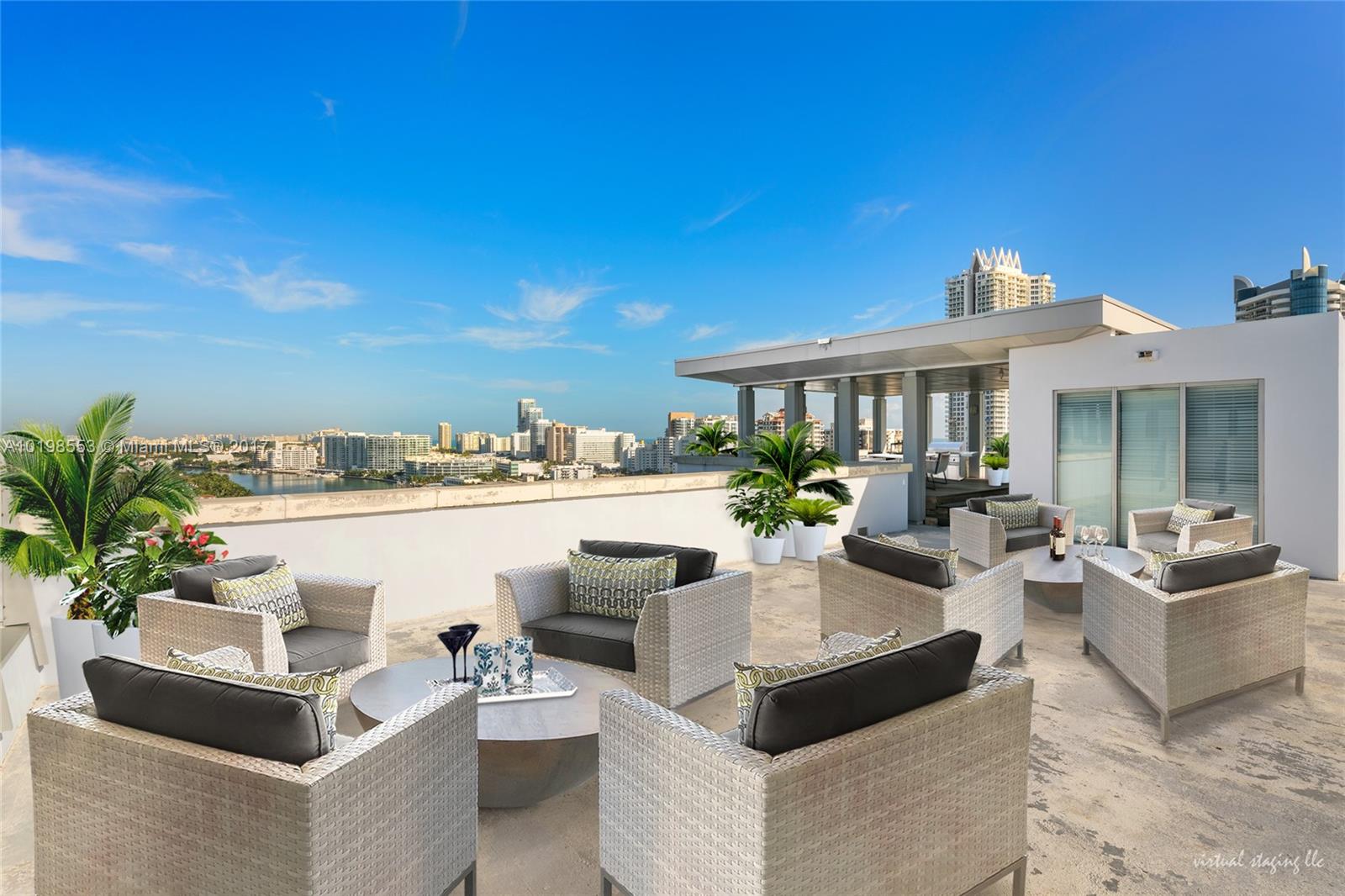 Incredible contemporary 2-story loft PH with 12 ceilings, roof terrace with ocean, intracoastal, golf, and city views, boasting over 5,000 SF total living space. Sunrises to provide soothing natural light & nighttime views that give a performance of twinkling activity & life. Oversized rooms, marble tile throughout, Bulthaup cabinetry, Sub-Zero & Gaggenau appliances, wraparound balcony and massive rooftop terrace. Gated private island, with 24 hour security.