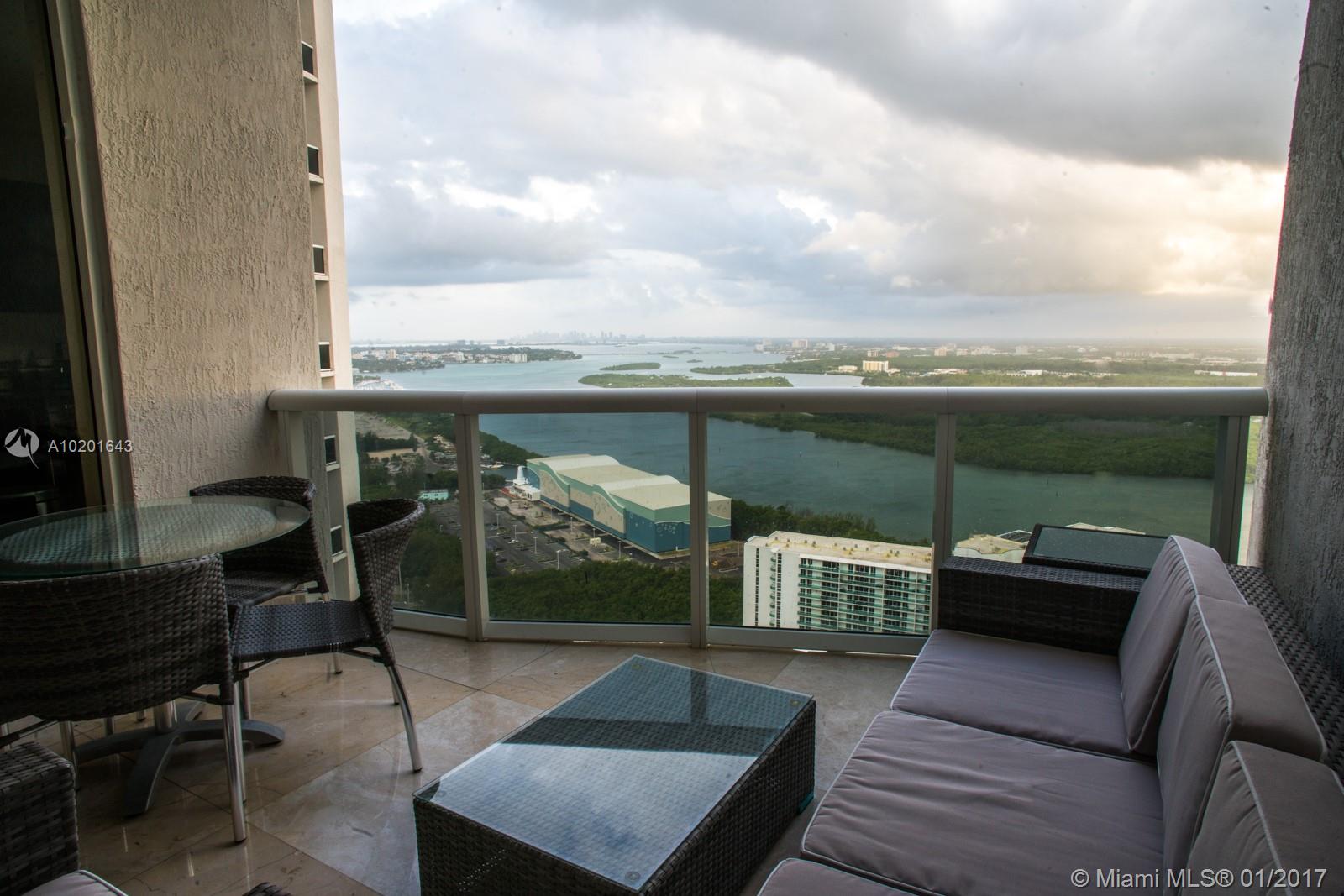 Exit the private elevator into your exquisite sky palace at Trump Tower III. This 3 bedroom, 3-1/2 bathroom condo is in model-condition. This flow-through unit features 2 large terraces: 1 on the ocean side, and the other on the city side. The master features a private-access balcony facing the ocean, plus an impressive city view from the roman Jacuzzi of the master bathroom. Balcony access from each suite, the kitchen, and dining room. This sale is turnkey and includes all designer furniture and décor.