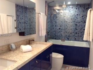 Beautiful 2 BR/2BA Top of line Kitch. reno w/new cabinets/stainless steel appliances/ stone countertops+ undermount sink+ bfast bar+ LR built ins+down lighting+ceiling fans+built in master closet+ renovated MBR Bath w/dbl undermount sinks glass tub/ shower enclosure/gorgeous glass tiles+ new vanity+ renovated guest bath+1 unassigned parking space + 1 assigned space +balcony+impact glass + Annual Fee to Master Association= $483.09+ Monthly maintenance = $946.00 App. Fee= $150