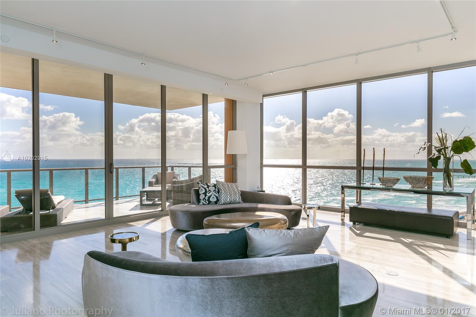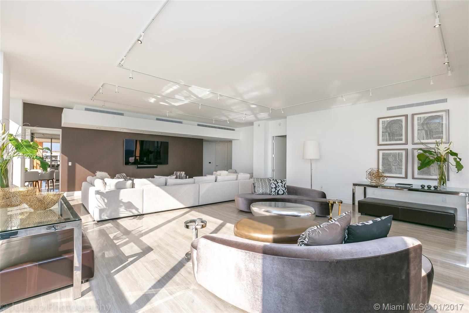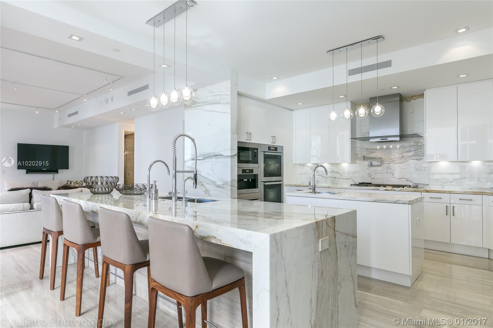 Uniquely finished with marble flooring throughout. Equipped with fully integrated Crestron system. Elegant wall wall coverings, crystal chandeliers, leather-clad closets, Dornbracht fixtures, active fireplace, 10'6 ceilings, Italian kitchen w/ Miele appliances, and onyx master bathrooms. Enjoy a private outdoor plunge pool and summer kitchen. Building features a Rolls Royce house car, daily breakfast, spa with Hamman, cinema and on-sight food and beverage.