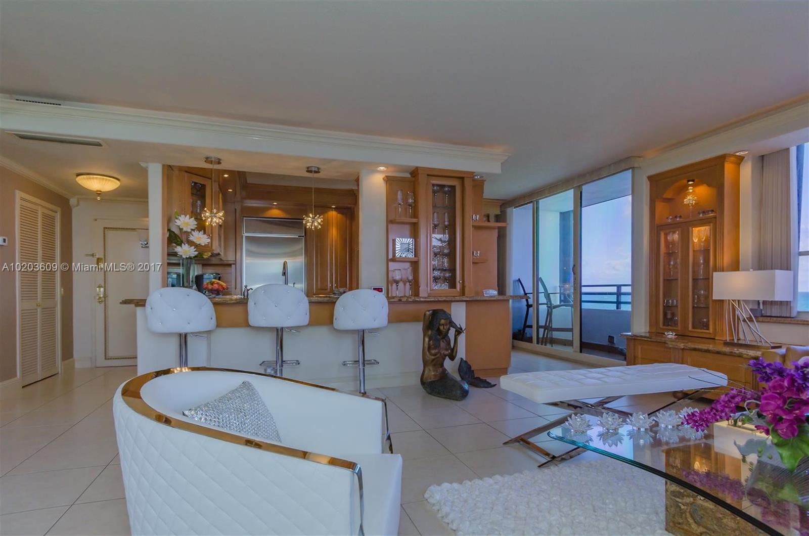 WOW! Direct Southeast Corner Oceanfront Redone Gem! Immediately see best ocean views to take your breath away. This stunning residence is sold furnished. Upgraded w/ finest finishes. Open state of the art custom kitchen w/ granite counters, top of the line appliances, wine cooler. Nothing original remains. Upgrades incl built-ins, window trtmnts, Bose sound system. Washer/ Dryer in unit, new AC + water heater, hurricane shutters & more. 1 Assigned parking + valet! Private Beach Access! 5-star Amenities