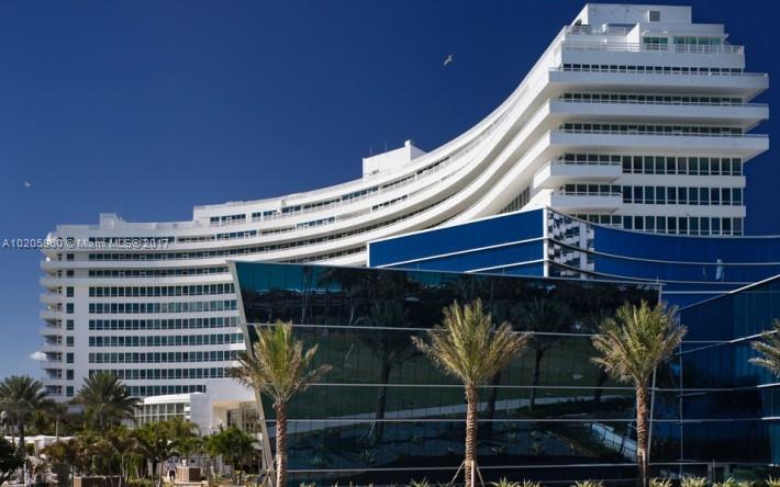 BEAUTIFUL JR SUITE/1 BATH WITH UNOBSTRUCTED OCEAN, BAY & CITY VIEWS. OWNER HAS OPTION OF ENROLLING IN HOTEL RENTAL PROGRAM. USE IT PART-TIME & RECEIVE INCOME WHILE YOU'RE AWAY! FULLY FURNISHED TURNKEY WITH SLEEPER SOFA AND KING BED. FONTAINEBLEAU OFFERS 22 OCEANFRONT ACRES, MANY TOP R RESTAURANTS, LIV NIGHT CLUB, 40,000SF STATE OF THE ART SPA & FITNESS CENTER. MAINTENANCE FEES INCLUDE: AC, LOCAL PHONES, ELECTRICITY, VALET AND DAILY FREE BREAKFAST IN OWNERS LOUNGE.