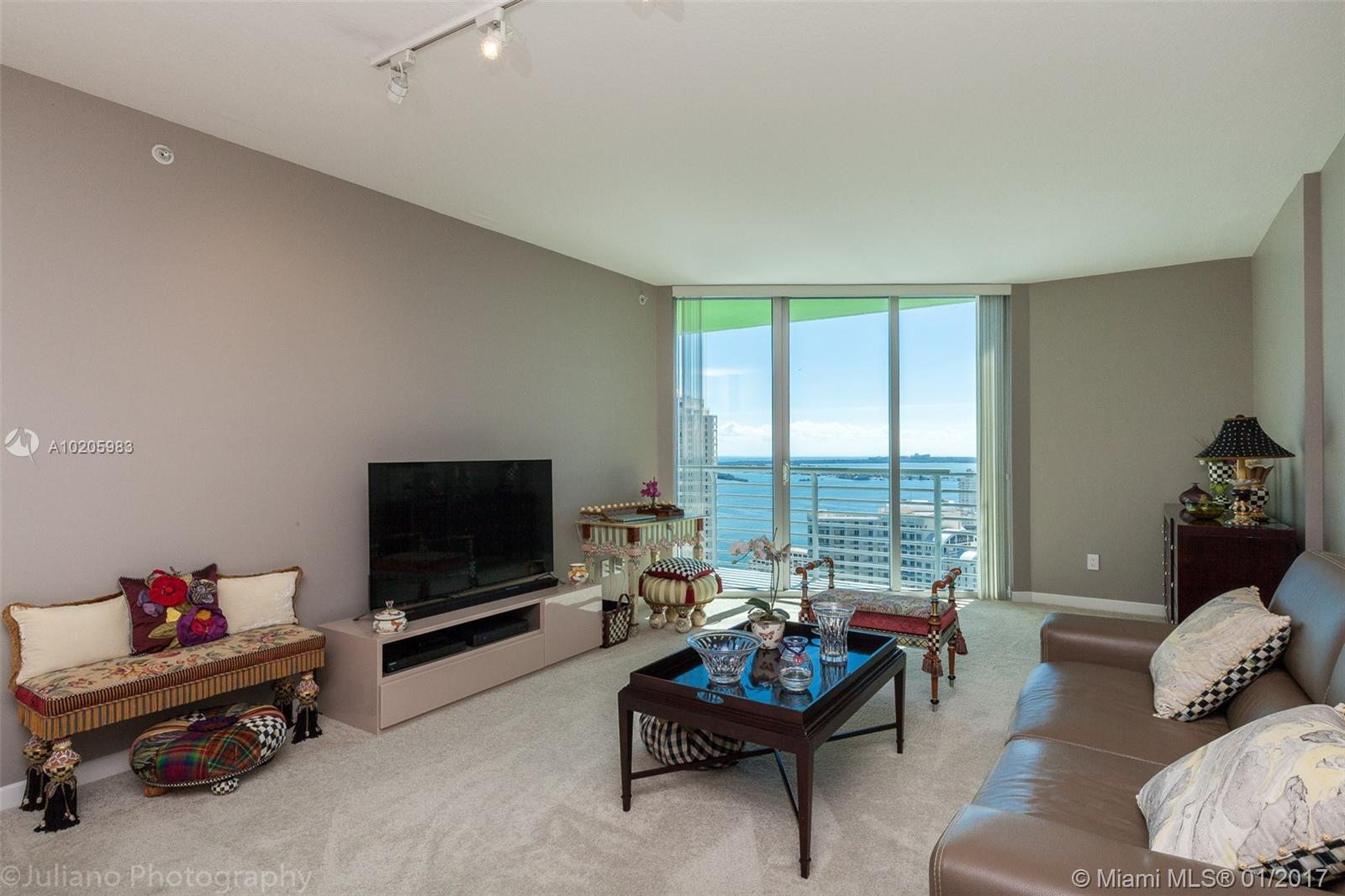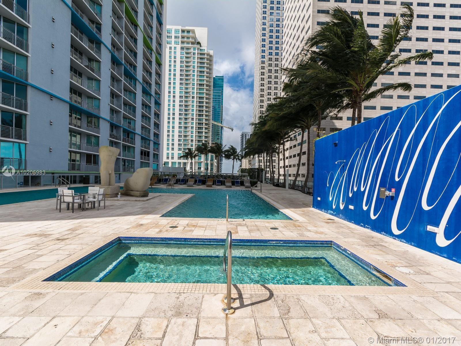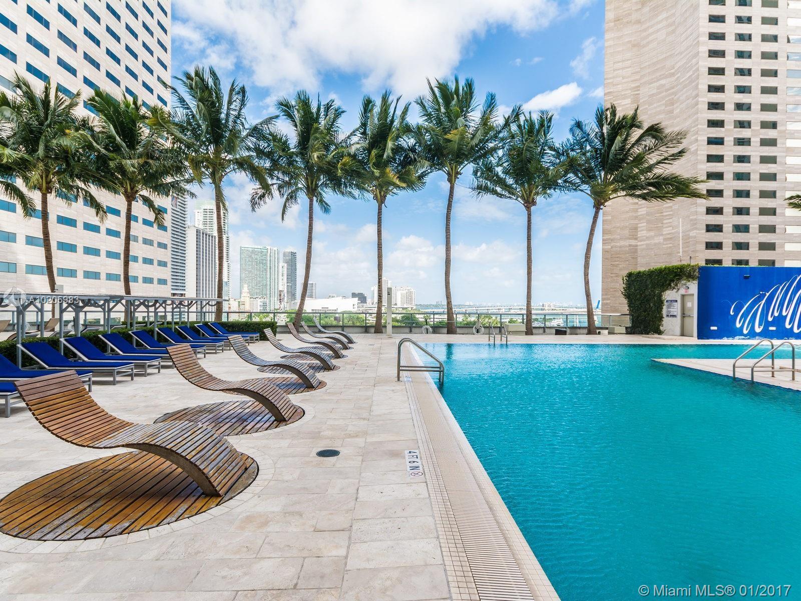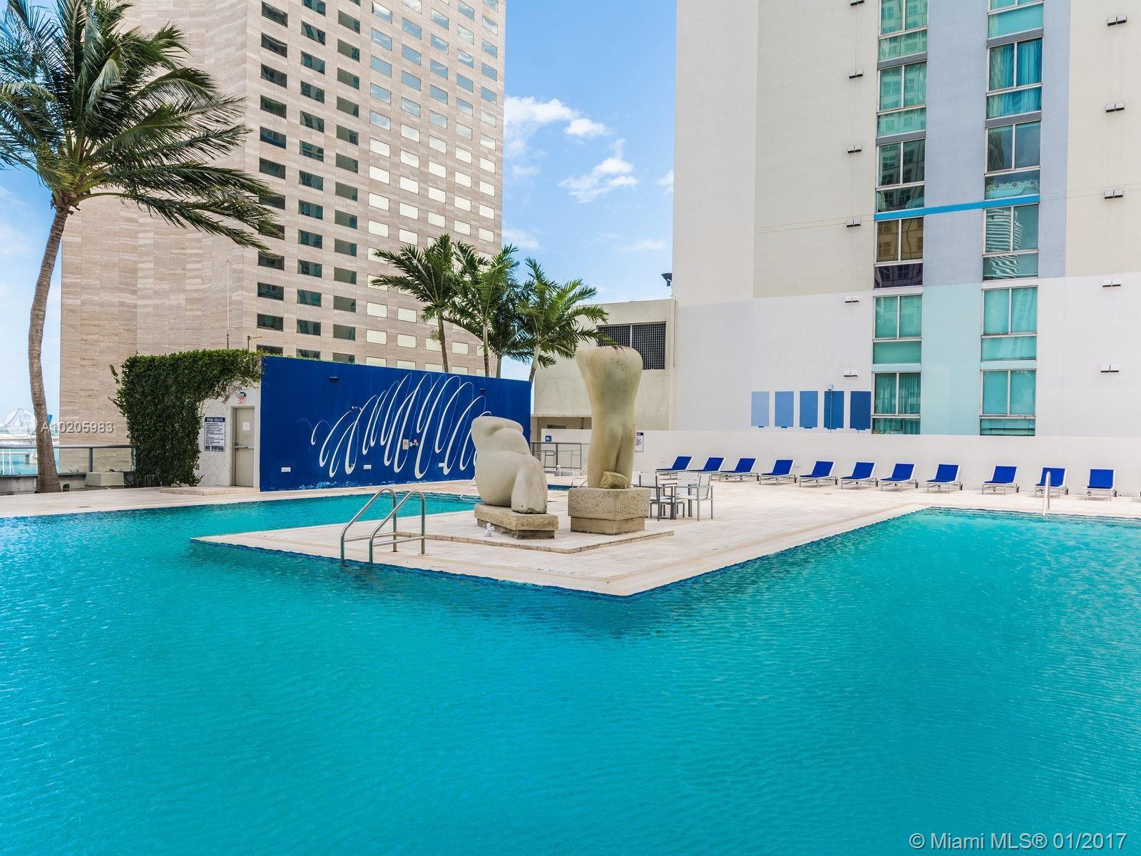 Amazing unobstructed Waterfront views of Biscayne Bay. One Miami East tower on the 41st floor with balcony! Spacious 1 bedroom/1 bath unit featuring gourmet kitchen with granite counters, large balcony, and walk in closet with organizers. Upgraded BOSCH appliances including washer/dryer inside unit. 1 assigned parking plus 2nd car valet at $ 100/month. Full service building includes concierge, valet parking, convenience store, 2 pools, fitness center, community room and all amenities.