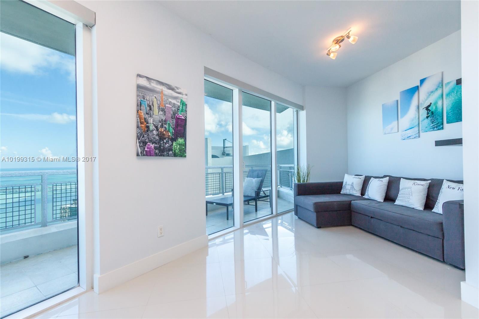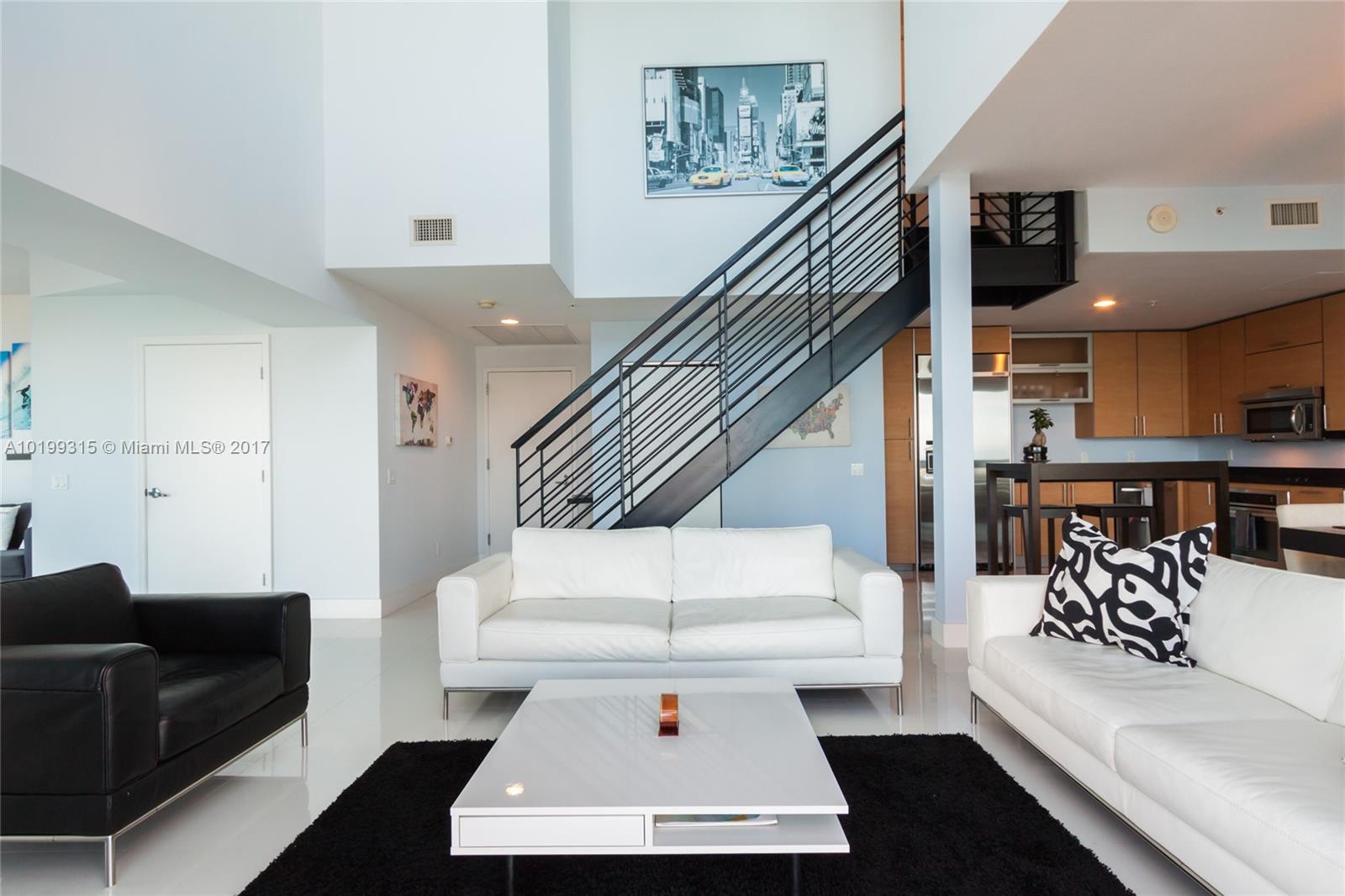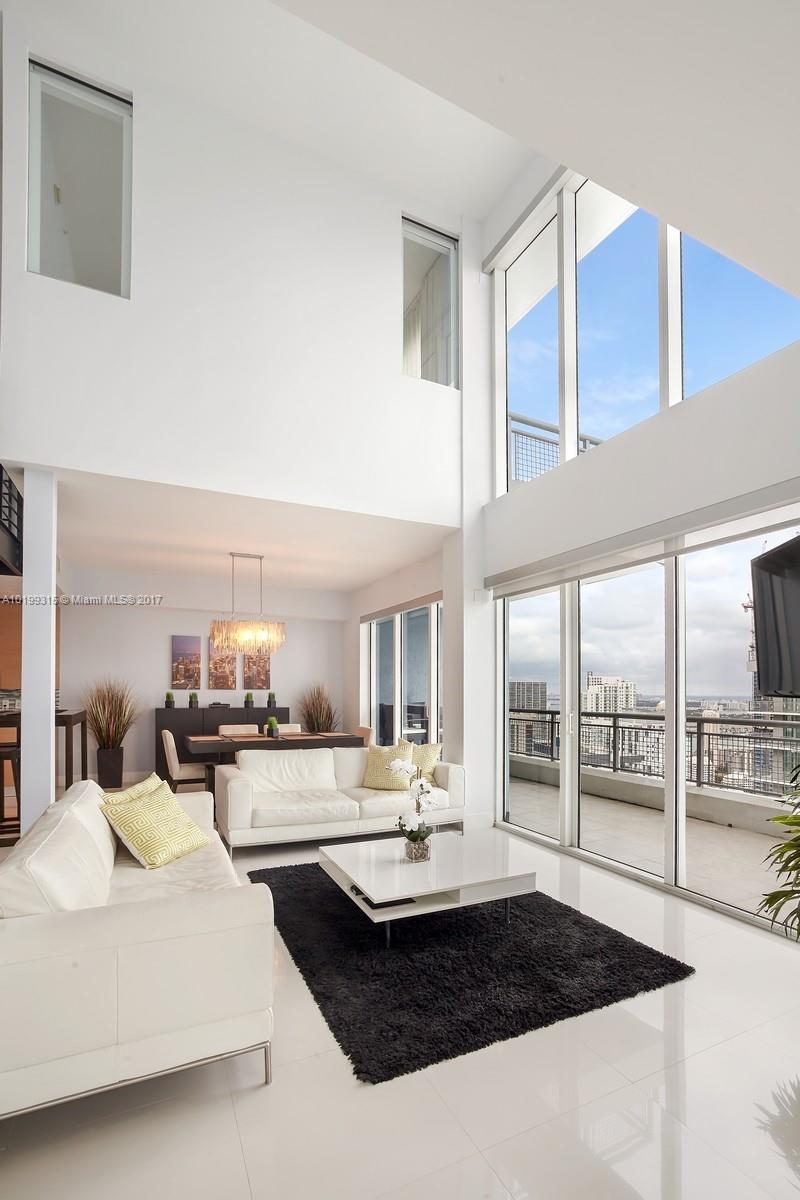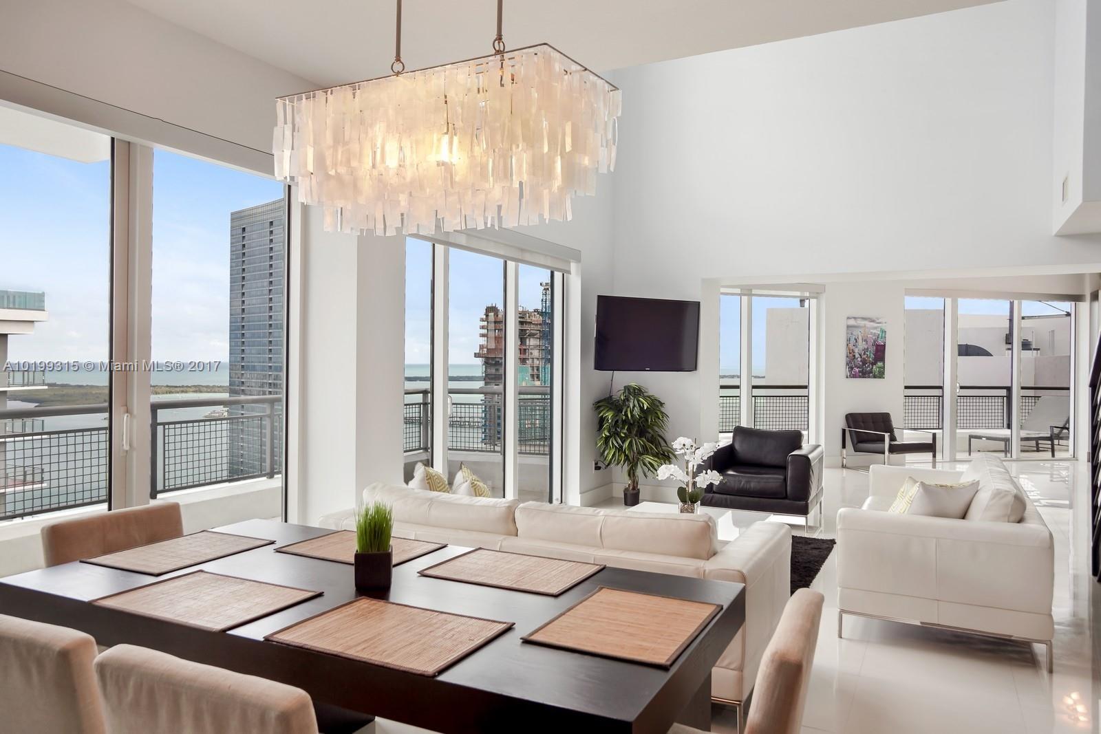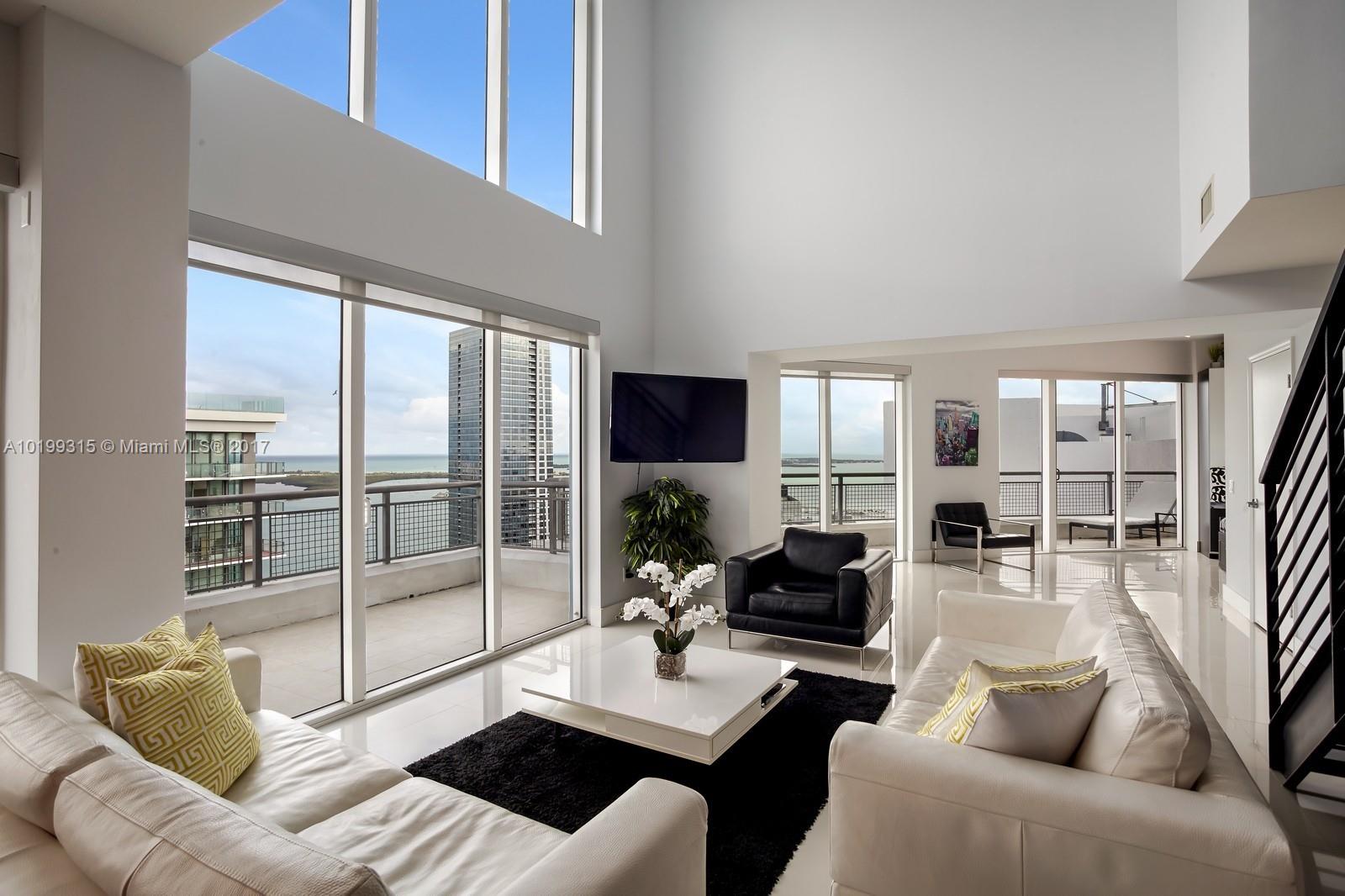Rare opportunity to own the largest penthouse at the Infinity. Enjoy magnificent panoramic views of the ocean, bay & Miami skyline from one of 4 balconies at this one of a kind SE corner Penthouse. Spread across two floors & featuring a floor plan unlike any other, this soaring sky home showcases 2 spacious bedrooms located at opposite ends plus a convertible den, 20ft ceilings, massive windows w/ electric blinds throughout, an abundance of natural light and access to a semi-private rooftop deck & spa.