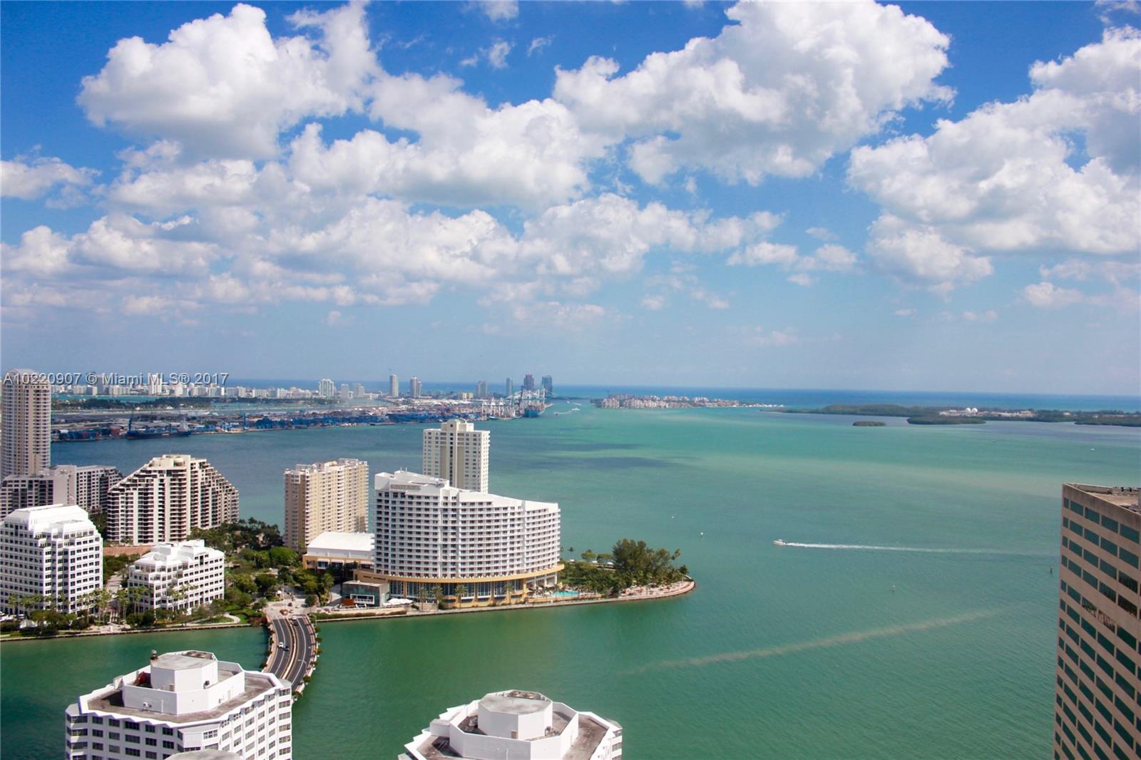 In the heart of Brickell with the most amazing views offered from The Plaza 42nd floor facing east, spectacular sunrise. The unit has laminate wood floors throughout, stainless steel appliances, spacious balcony, and amenities second to none. Assigned parking conveniently located on 1st floor parking level. A must see!