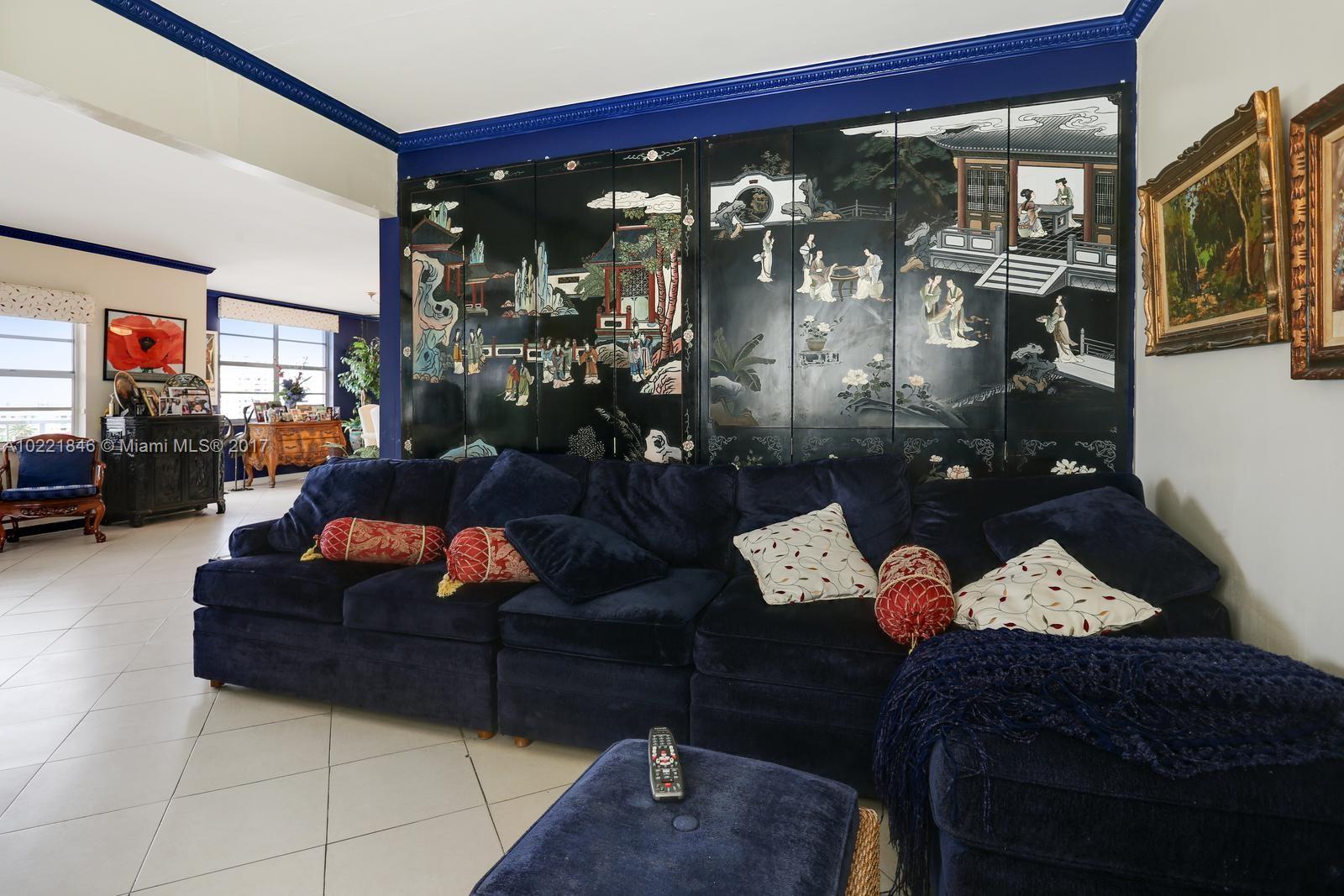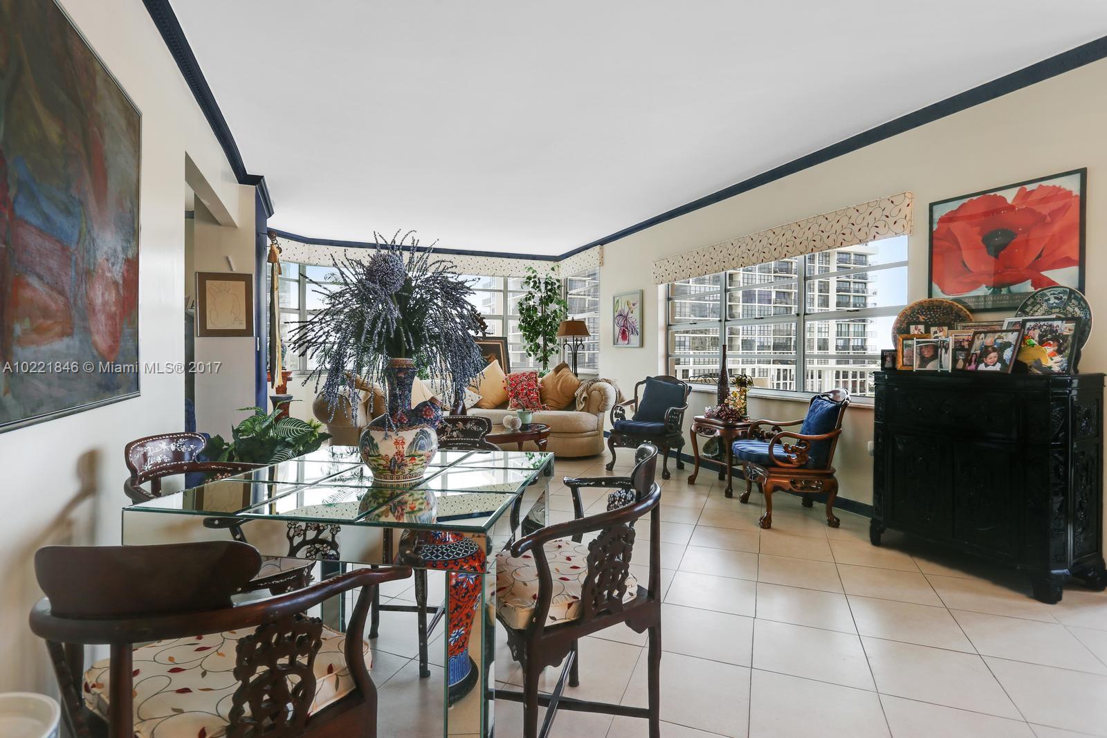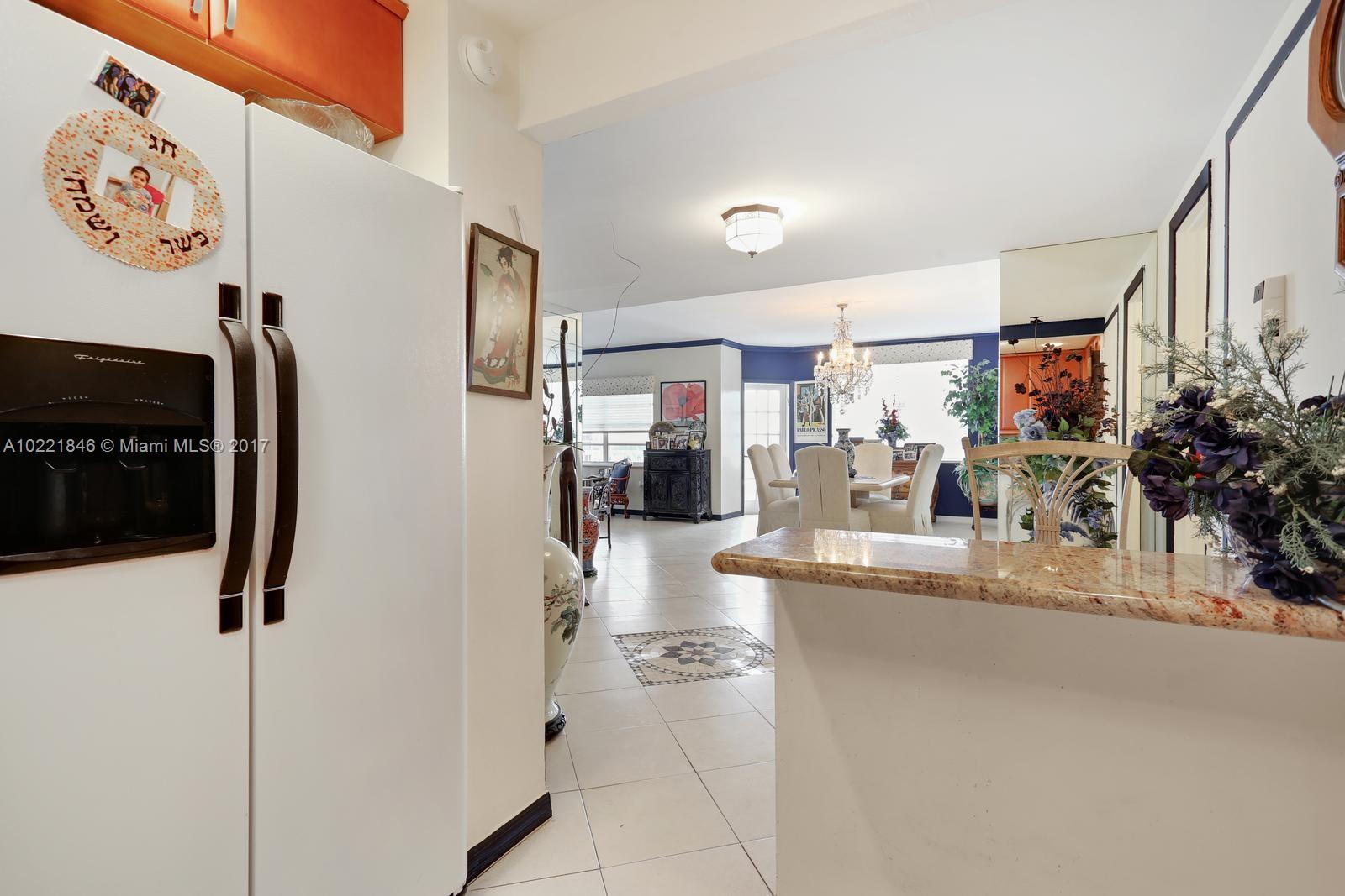 CORNER UNIT. Large 3 bedroom 2 1/2 bath corner unit on the southeast corner overlooking the intra-coastal and city views. Remodeled kitchen, lots of storage space. Professionally decorated. The building has awesome amenities including a private beach, 2 restaurants, tennis courts, basketball courts, 2 pools, 2 exercise rooms, beauty salon, 24/7 security, mini mart, dry cleaner and even a synagogue on premises. The monthly maintenance includes A/C, cable and much much more.