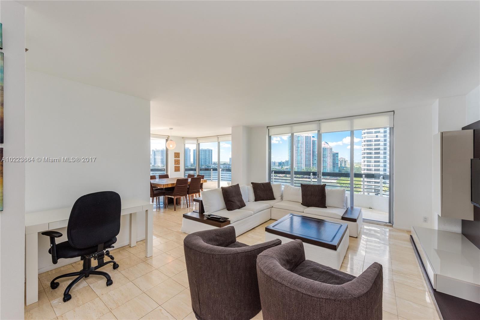 Spectacular fully upgraded unit w/ stunning bay views in desirable Tower 300! Sold turnkey! Tons of natural light in spacious living area w/ open floor plan & large balcony overlooking the bay. Travertine marble throughout & wood floor in BRs. Modern kitchen w/ Miele appliances. MA bath w/ tub, shower & large walk-in closet. Also avail. for rent furnished. All-inclusive gated community w/ active lifestyle w/ pool, spa, tennis courts, walking paths, gym & more. 3 min to Aventura Mall, 5 min to beach.