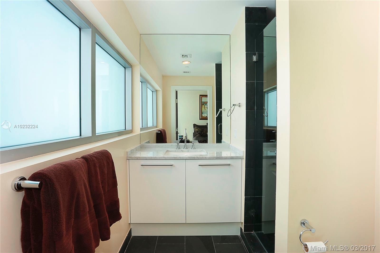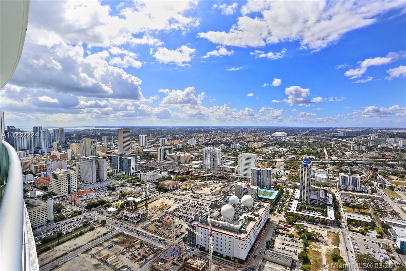 Elegant 3 bed/3.5 bath flow thru PH. Rare striking views of Ocean, Portmiami, Miami Beach and city from multiple oversized east and west private balconies. Kitchen features built in espresso station, ice machine and wine cooler. Granite surfaces in kitchen and bath with marble floors, custom Italian doors and warm wood flooring in bedrooms. Private elevator/foyer entrance. Master bath includes separate spa tub. Walk to Perez Art Museum, Museum Park, AA Arena, Arsht Center and easy access to highways.
