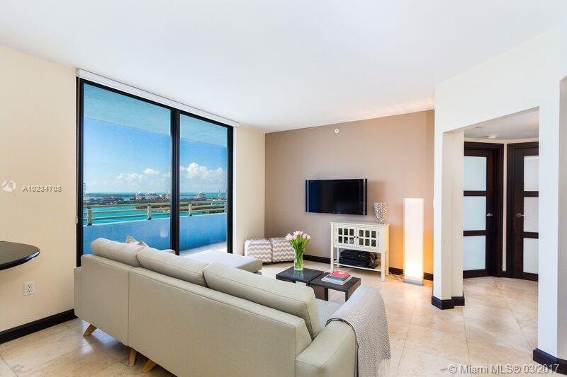 Unobstructed direct bay views from every room. From the moment you enter this oasis you are greeted by the zen foyer & captivated by the views. Spacious split floorplan w/travertine marble floors, solid wood & frosted glass doors, open kitchen w/expansive ocean & bay views & granite countertops and 2 full remodeled baths w/glass shower doors & Kohler fixtures w/master w/carrara marble & jacuzzi. In luxurious bayfront South Beach bldg w/24 hr concierge, valet, heated pool, tennis, convenience store & gym.