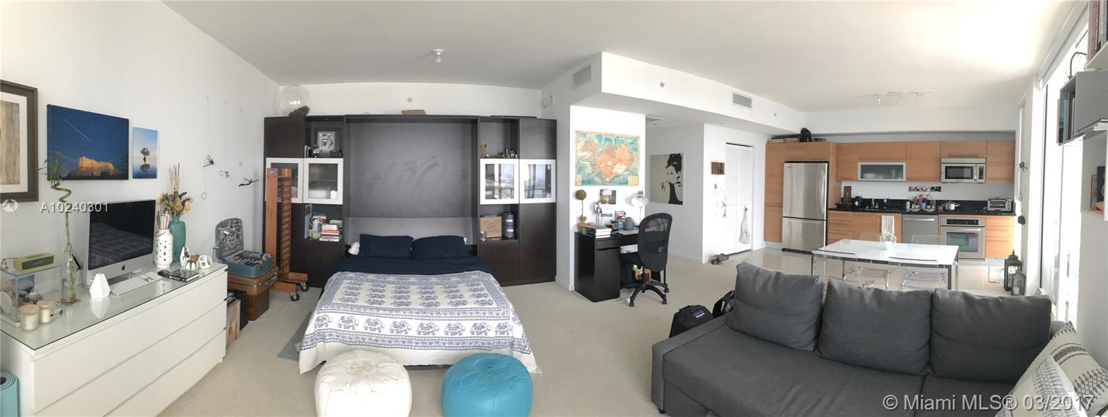 Beautiful Studio with amazing views in the heart of Downtown, across from Bayside, high ceilings, washer & dryer inside the unit, murphy bed, amenities include 4 pools, gym, cardio & meeting room and much more, walking distance to Arena and Miami Dade Community College, centrally located, Metro mover across the street, Currently rented, lease expires May 31, 2017 and tenant pays $1750.00.