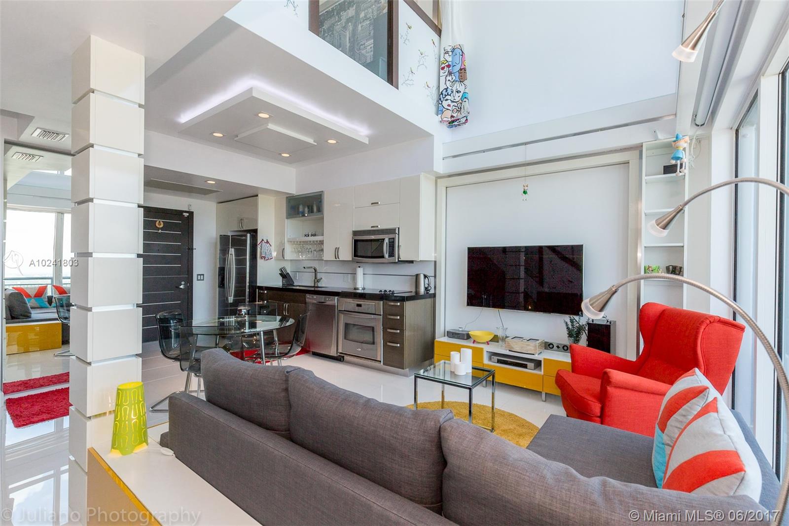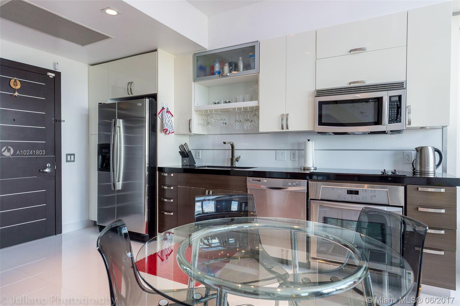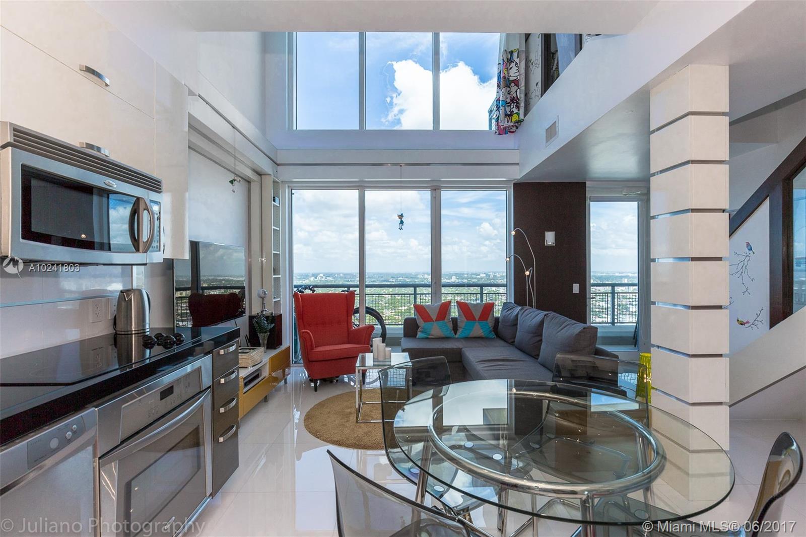 This bright and elegant two-story apartment, in one of the finest buildings in Brickell, has two balconies with panoramic views of the Miami skyline, city and bay. Unit is on the 44th floor with two full bathrooms (one on each level), a second floor master bedroom with walk-in closet and drop ceiling lighting. Residences above the 40th floor have exclusive use of the private roof-top terrace. Endless amenities include state of the art fitness center, steam room and sauna, infinity edge pool, 24 hour security, convenient valet, concierge, rooftop Jacuzzi and sundeck.With easy access to public transportation and within walking distance to shopping, fine dining and entertainment in Brickell City Centre.