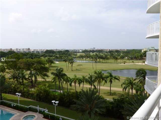 Beautiful view of Diplomat Golf Course and pool, features European kitchen cabinetry, granite counter tops, stainless steel appliances, 9 foot ceilings, impact windows and doors, 24 HR Security, valet, cyber cafe, business center, theater, pool, gym, sauna,. Access unit directly from 2 private parking spaces on 5th Floor and Storage.