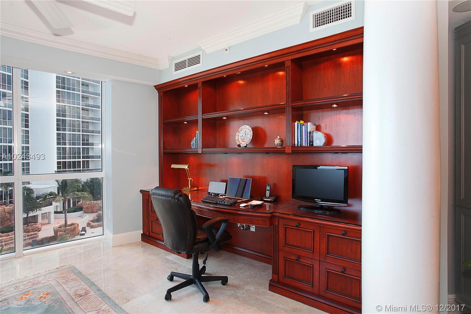 Neighbor to the Porsche Tower. Sweeping ocean views from every room! Priced to sell! For the purchaser who desires perfection! Out of this world and rare Trump Royale 4br/3.5bth (4045sq.ft) Direct oceanfront. This apartment truly captures the magnificence of the ocean and beauty of the beach from the front door and beyond. Polished marble floors, superior electric blinds throughout, built-ins, extensive decorator lighting and customized blue granite bar.