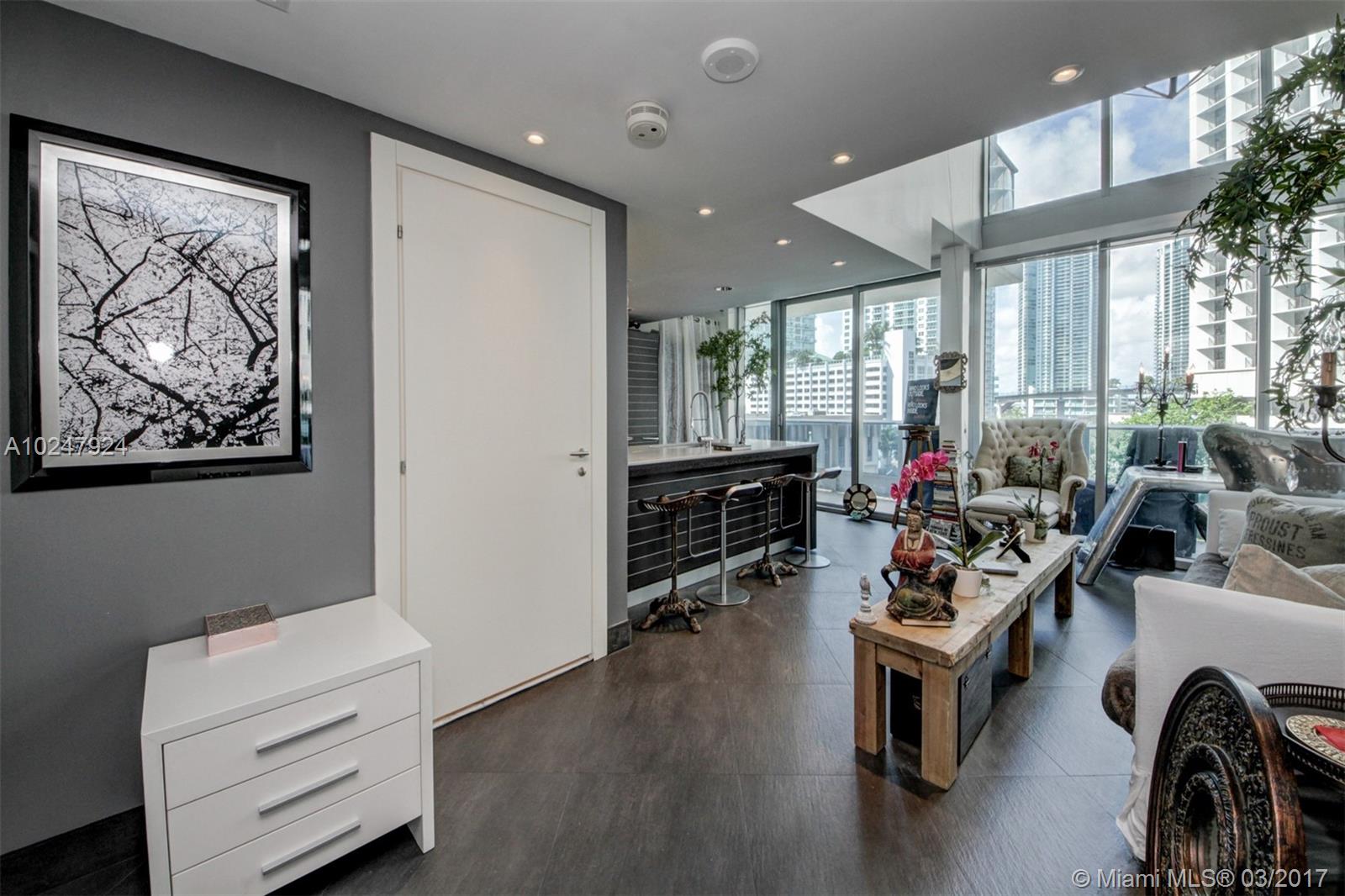 Downtown Miami's most prestigious address Beautiful, artistically decorated loft Floor to ceiling glass and 20' ceiling height provides an abundance of natural light while accentuating the beautiful views of the Miami River and downtown Brickell Full service Residential/Hotel managed by Kimpton Gym and spa managed by Exhale.