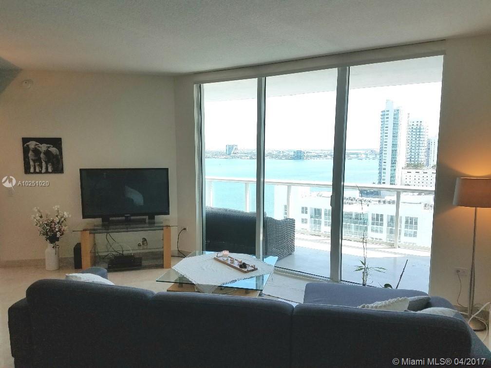 2 bedroom, 2 full bath, condo facing South with unobstructed water and city views. 18" x 18" diagonally installed marble floors throughout and on balcony. New master bathroom vanity and washer / dryer unit, walk in closets. Full service building with 24 hour security, infinity pool, sauna, and gym. Perfect location in Edgewater (Midtown/Design District), close to multiple restaurants, grocery stores, beaches, airports, and shopping. 1 parking spot included. Priced to sell quickly!