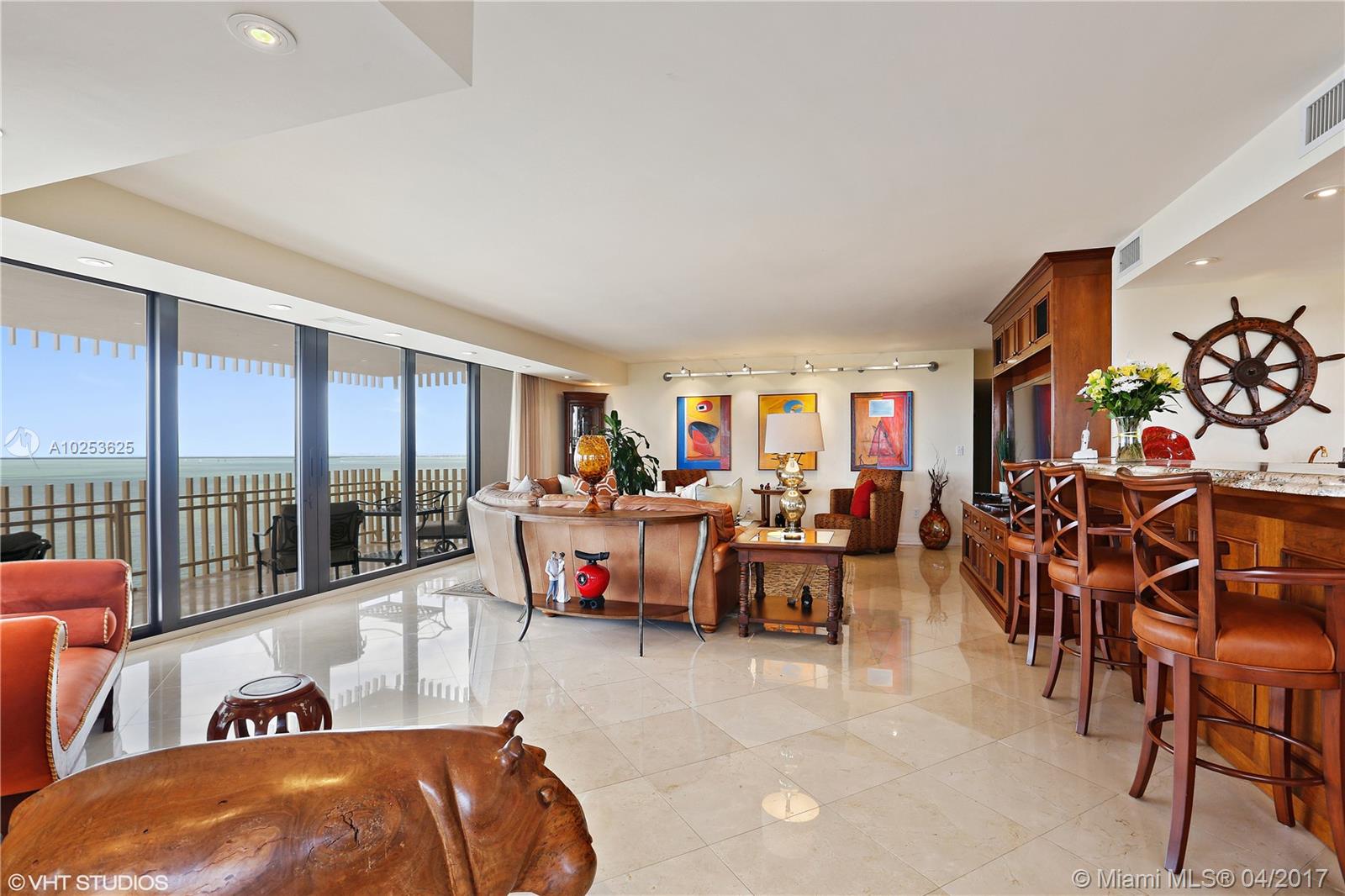 A HIGH FLOOR "09" HAS FINALLY ARRIVED!! THIS LARGE 3 BEDROOM 2 1/2 BATH HAS COMPLETELY UNOBSTRUCTED VIEWS OF SOUTH BAY KEY BISCAYNE AND DOWNTOWN MIAMI SKYLINE! UPGRADES INCLUDE ALL NEW SLIDING GLASS DOORS AND WINDOWS MARBLE FLOORS GRANITE WET BAR WITH ICE MAKER AND REFRIGERATION GOURMET EAT-IN KITCHEN WITH DOUBLE OVENS AND TOP OF THE LINE APPLIANCES FABULOUS BUILT-INS CUSTOMIZED CLOSETS GREAT LIGHTING HUGE MASTER SUITE WITH TREMENDOUS WALK-IN CLOSET AND MAKE UP VANITY WITH SINK ARE JUST THE BEGINING!