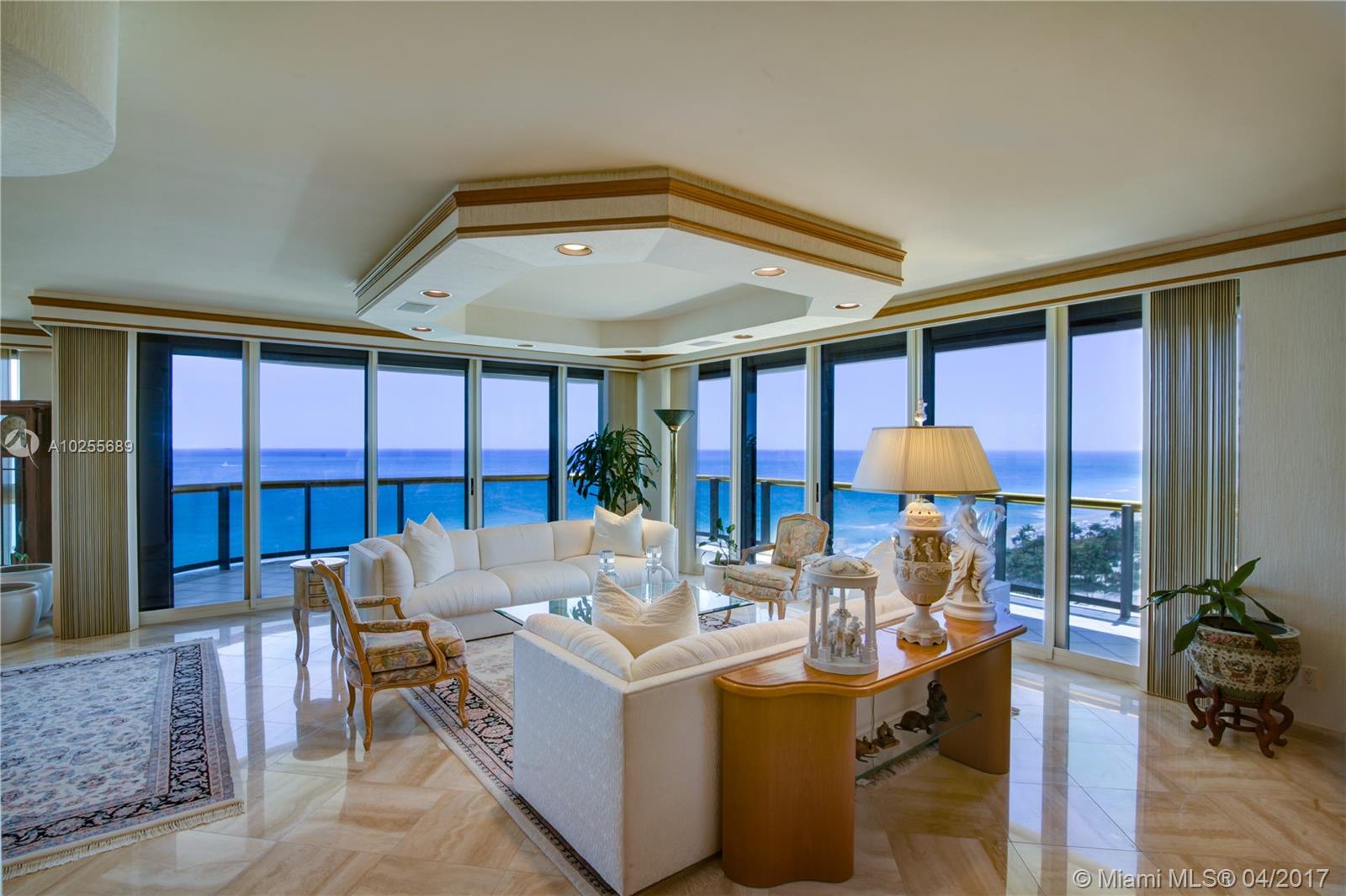 Panoramic, unobstructed direct ocean & city skyline views are a signature feature of this wrap around, south- east corner residence nestled on the 14 floor of the premier ocean front Bal Harbour Tower. Accessed by private elevator this 3,500 sq ft apartment is set up as expansive one bedroom suite with spacious den / sitting room & two over-sized walk-in closets. Total of 3.5 baths. Conveniently separated staff quarters. Open concept main living areas with breathtaking views of Atlantic ocean seamlessly incorporate spacious terraces with interior living & family rooms, bar & formal dining. A choice location building within walking distance to Bal Harbour shops offers top-notch services including renowned private restaurant, concierge, pool & beach service, fitness &valet.