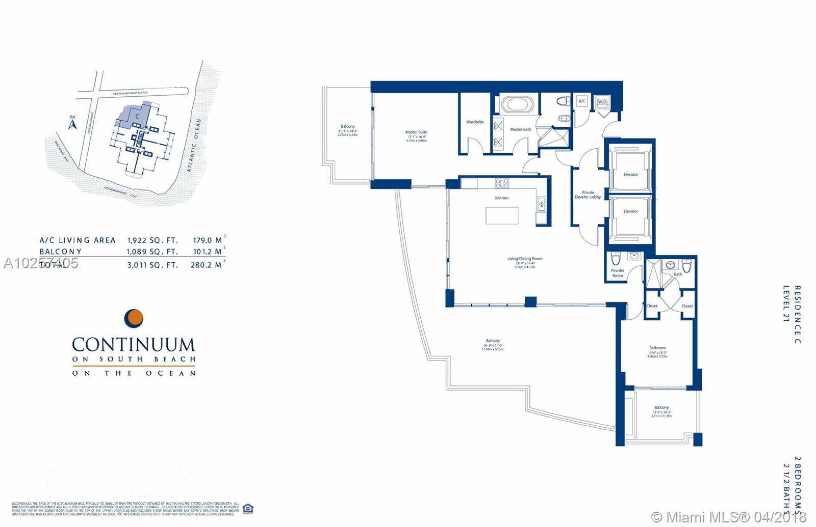 Spacious corner residence completed w highest quality craftsmanship. Located on the most unique floor offering an oversized terrace, enjoying sweeping views of the coastline, South Beach, bay & downtown Miami. Split bedroom plan each with a private balcony. Projection TV in Living and Master bedroom,Gourmet kitchen w Subzero, Miele Appliances. Two wine coolers, oversized washer/dryer. Private Foyer entry, 10 FT ceilings with floor to ceiling glass. Continuum 5-star amenities include 24-hour security/valet, 3 tennis courts, private beach pavilion, 2 lagoon style pool, 23,000 SQFT sporting club & spa w Lap Pool.