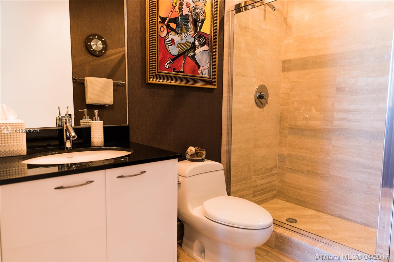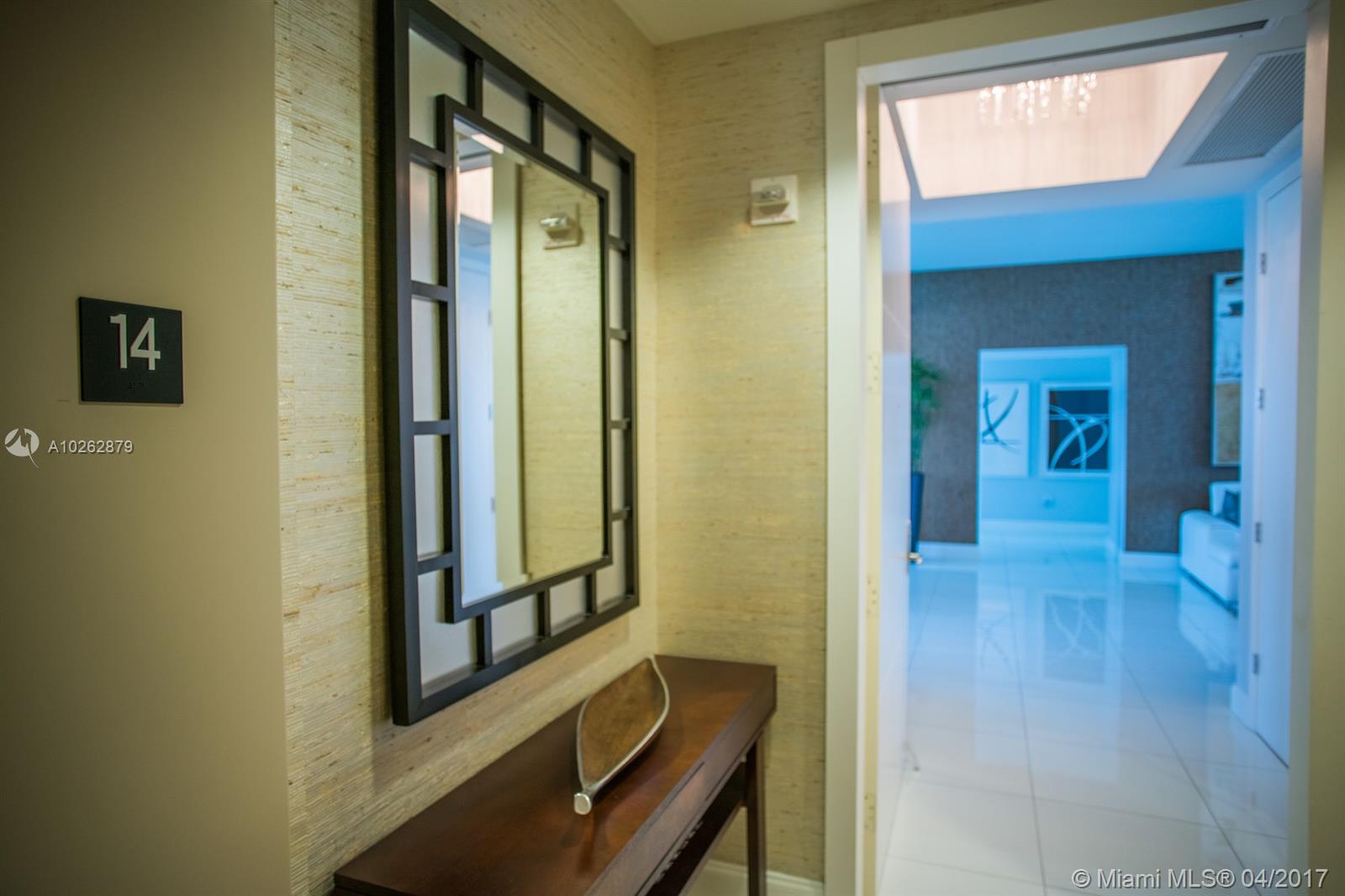 Sophisticated elegance with 180 degrees of ocean, city, and intracoastal views: Welcome to Residence 1404 at Trump Tower III. Upon entering through the private elevator foyer, to the right you have a vibrant blue view of the ocean, and to the left you have a beautiful view of the city. This unique flow-through condo also features 4 separate balconies and breathtaking views from the master bathroom roman Jacuzzi tub.